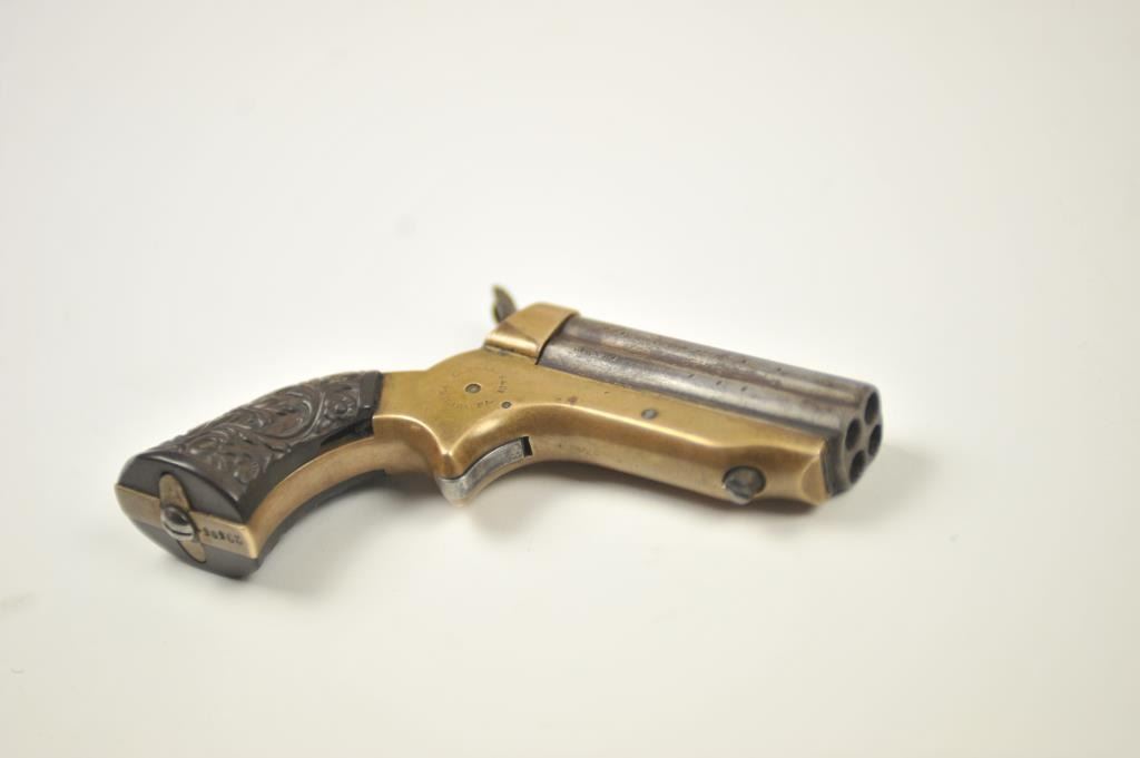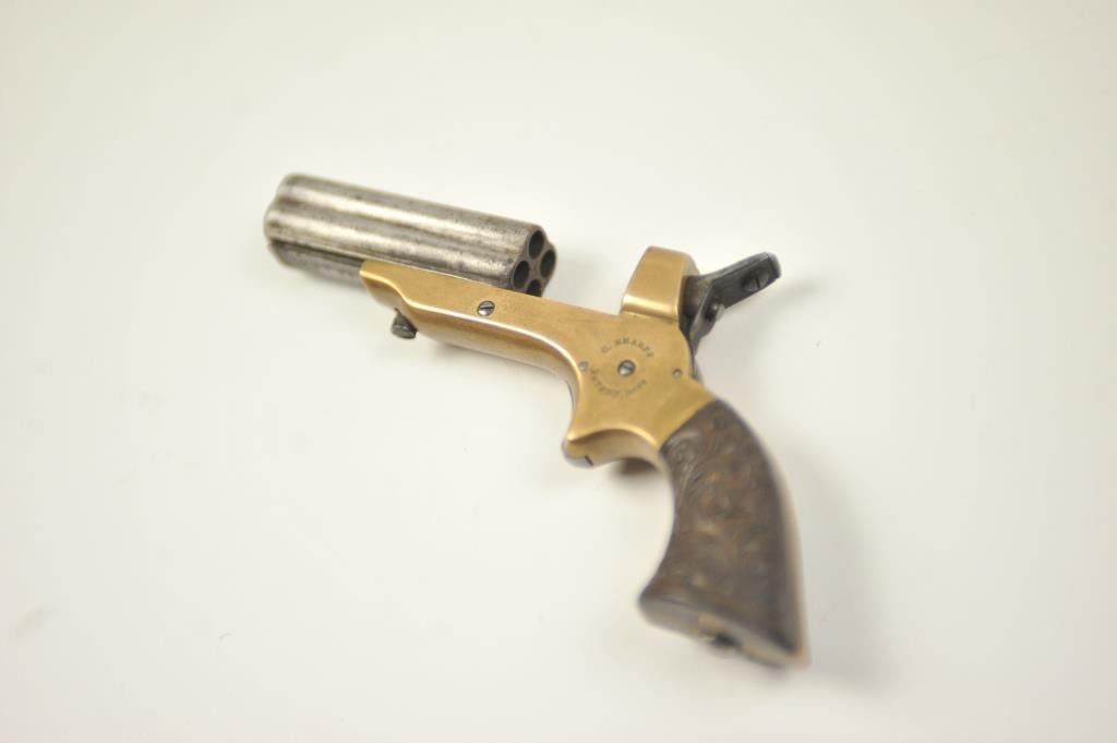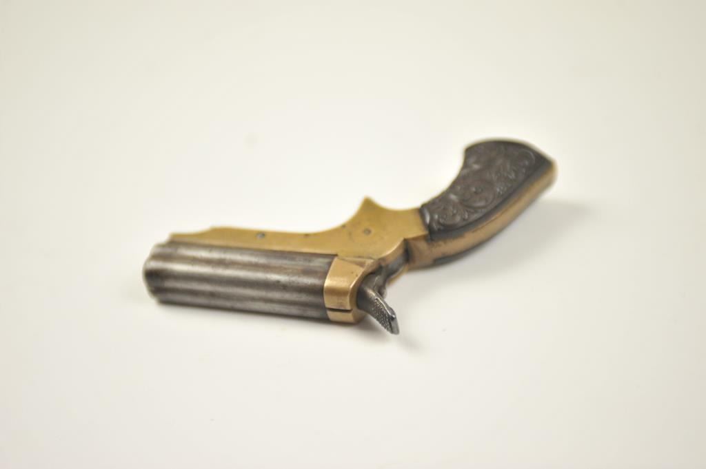 Lot 542 Sharps 4 shot derringer in .22 caliber with early forward release and floral gutta percha grips, S