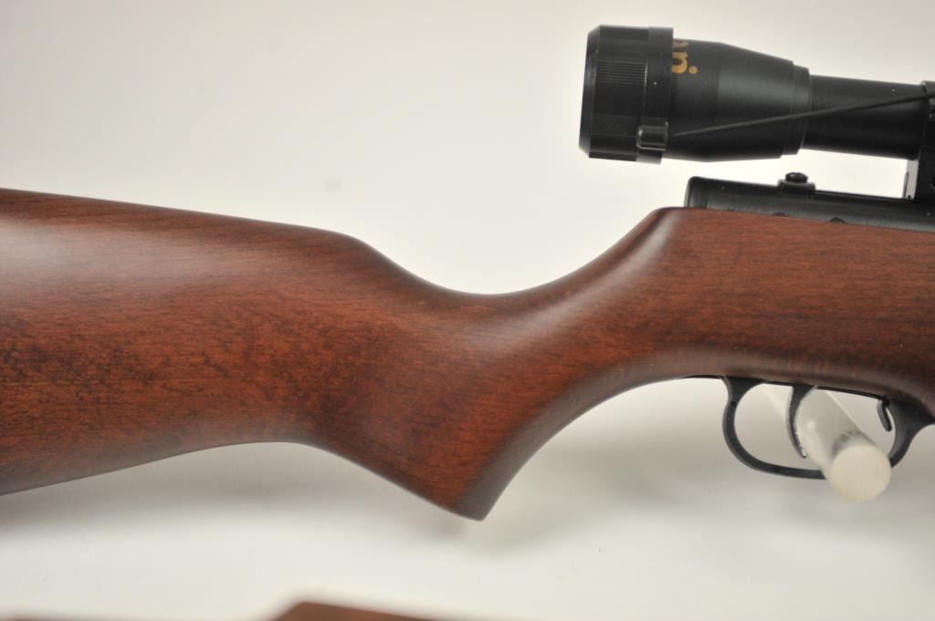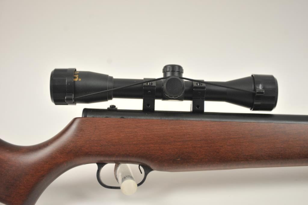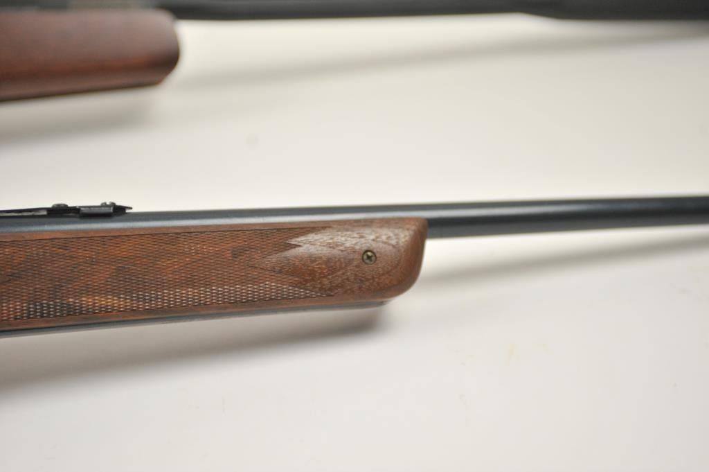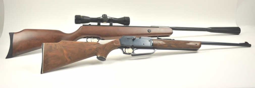 Lot of two air rifles. The lot includes: a Daisy Model 880 pump BB air rifle with a 21” barrel in good overall condition and a Beeman’s Quite Tek Series .177 caliber pellet rifle with a 4 x 32 fixed power scope andhardwood stock in very good condition. Both air rifles are working at the time of description. Est.: $100-$200.