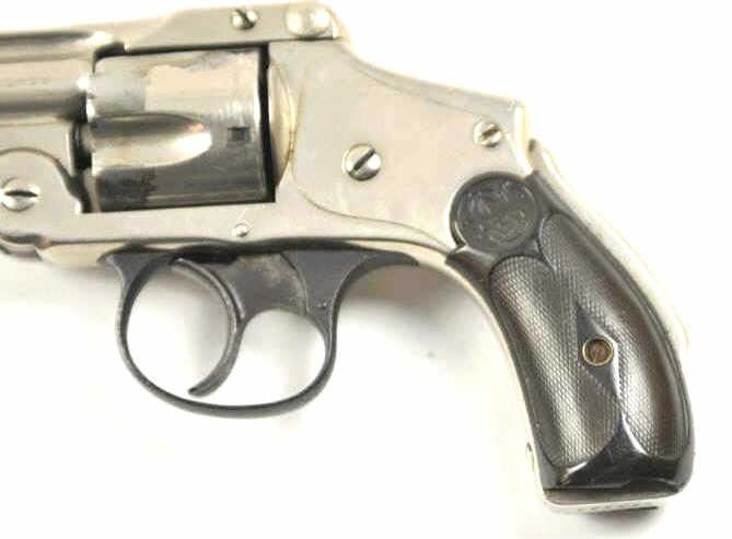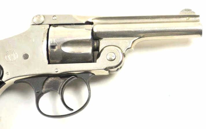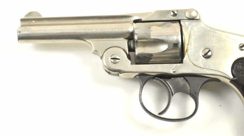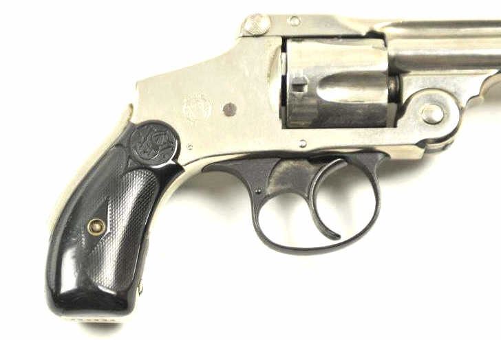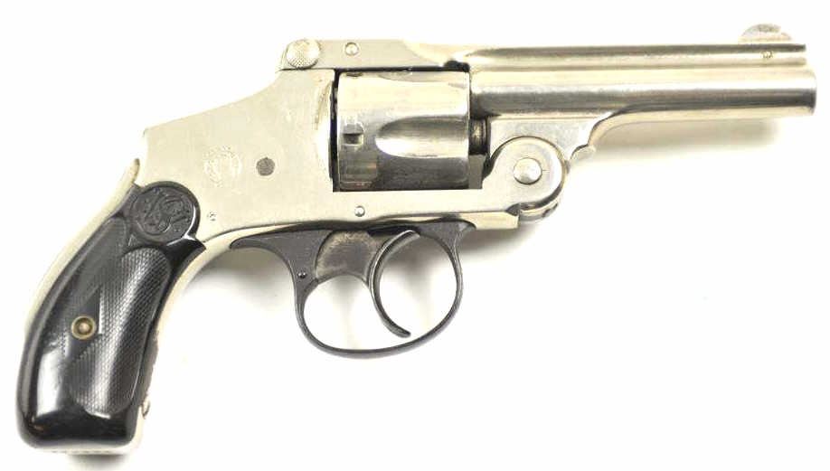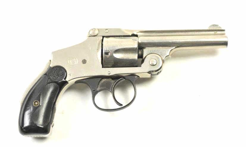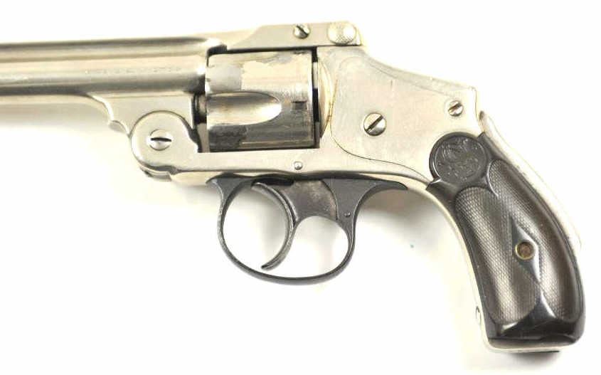 Smith & Wesson Top Break Lemon squeezer DA revolver, .38 S&W caliber, Serial #200664. The pistol is in very good to nearly fine overall condition with a 3 ¼” barrel. The pistol retains the majority of the nickelfinish with wear at the muzzle and some flaking of finish on the cylinder. The checkered hard rubber S&W marked grips are in good condition with a small chip at the base of the left panel. The bore is fair and may clean, the action functions and the markings are legible. Est.: $200-$400. (C+R/PPT).