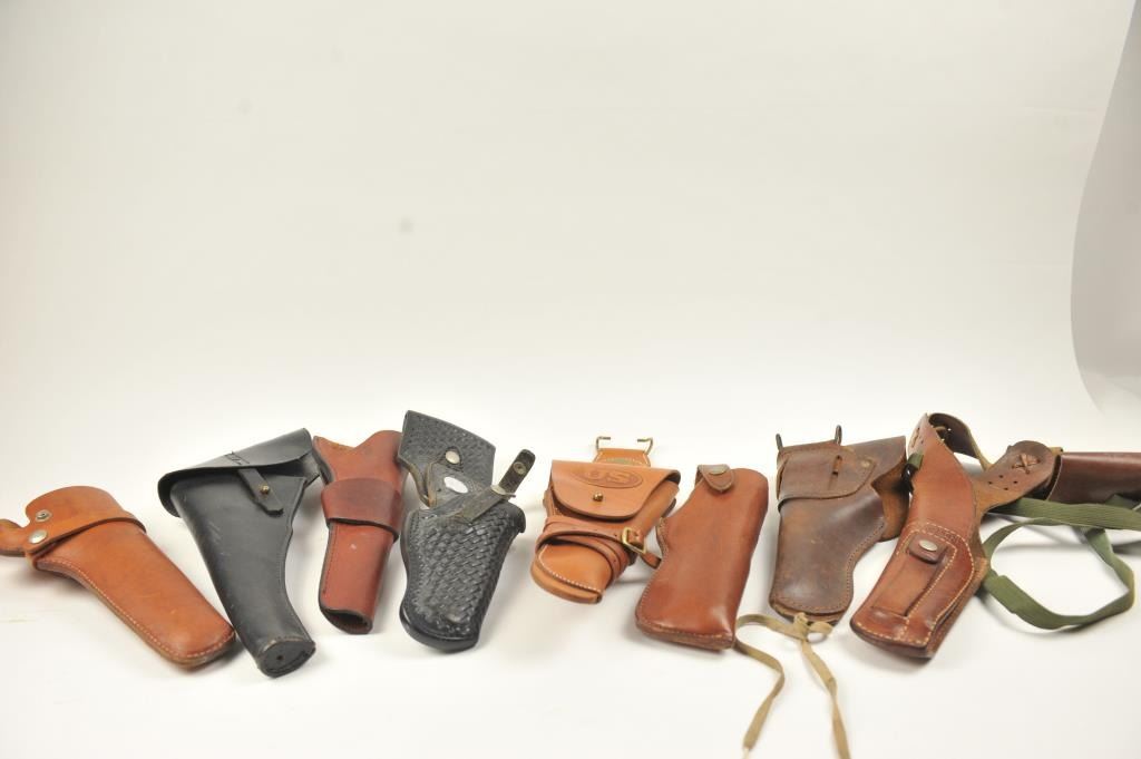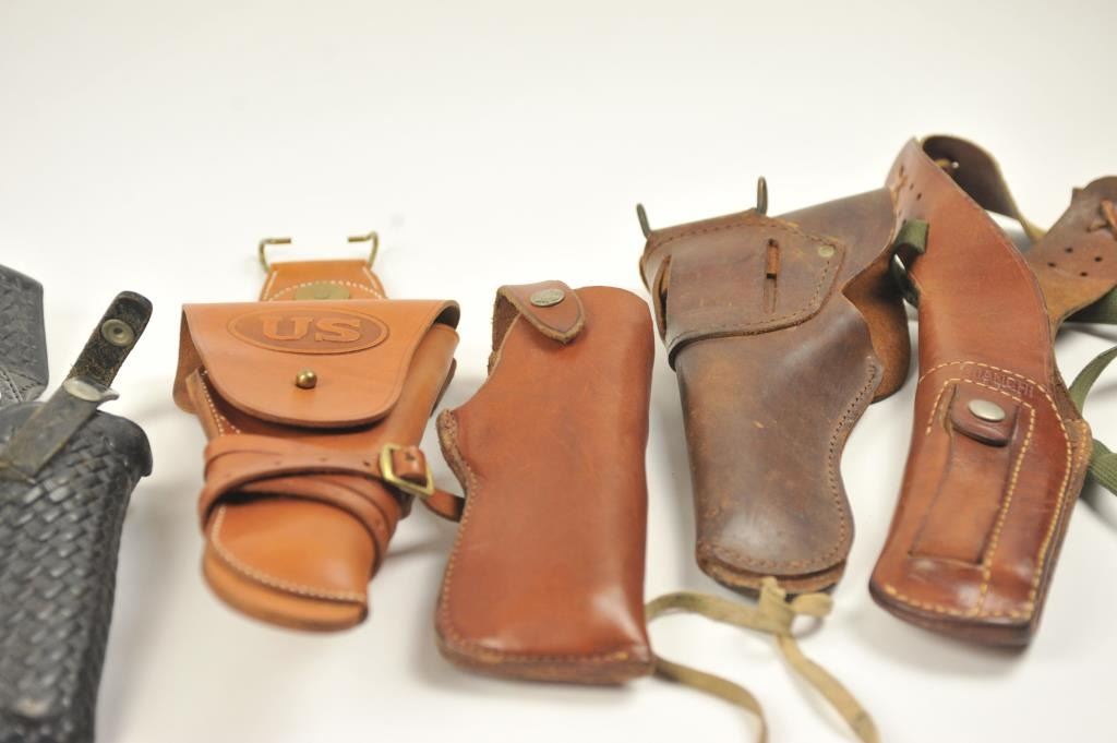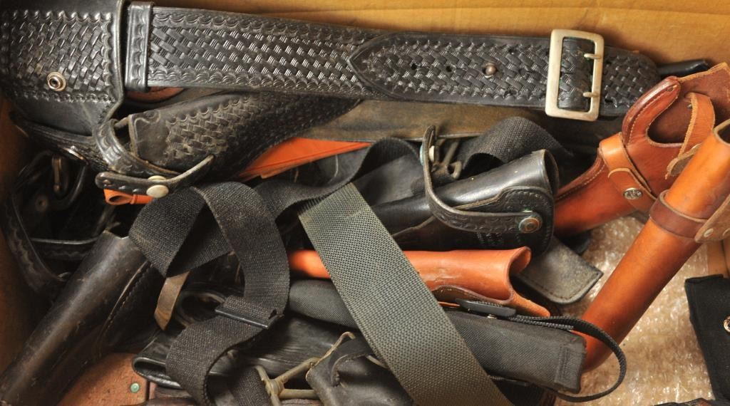 Lot 580 Bonanza box lot of commercial holsters from a police officer/collector dating back to the 1950’s i