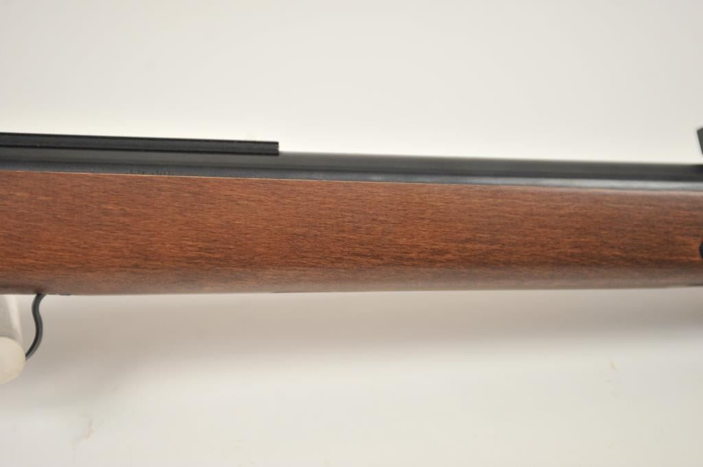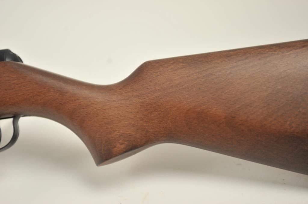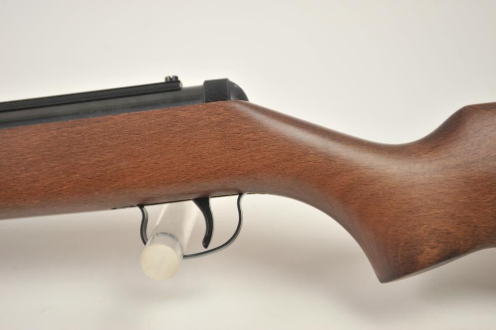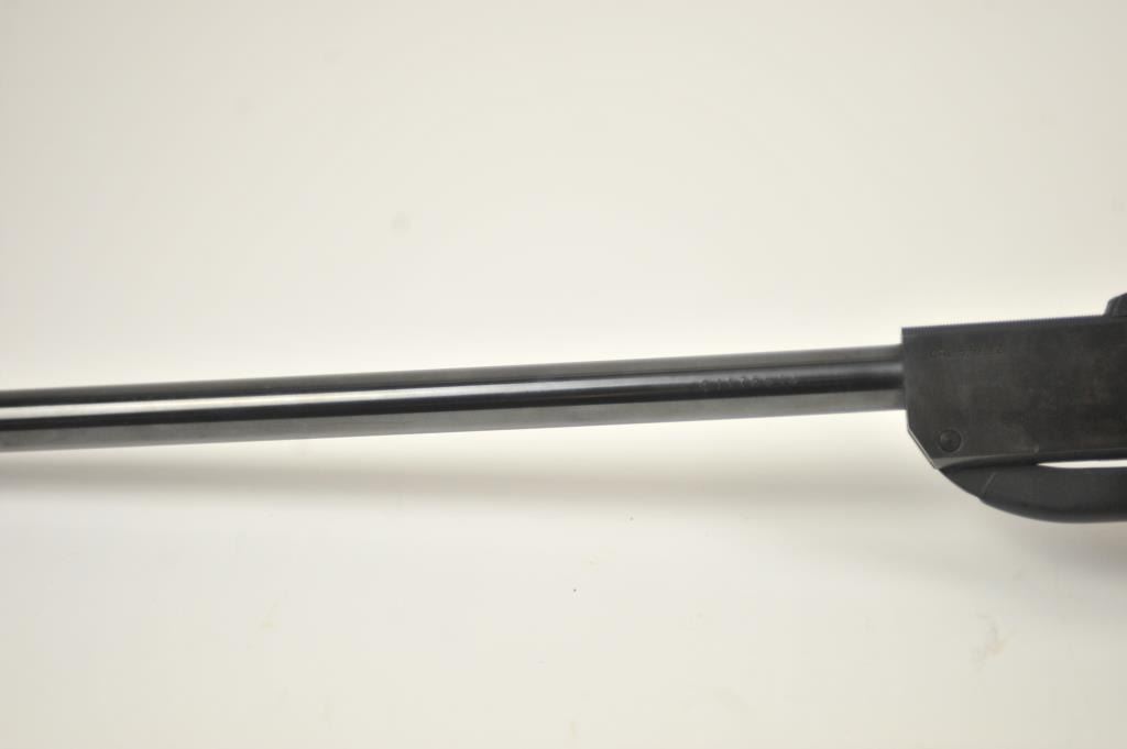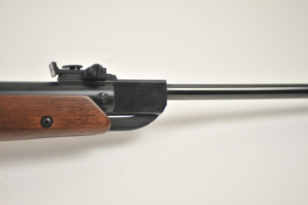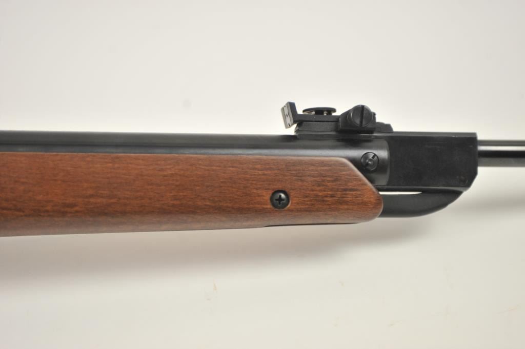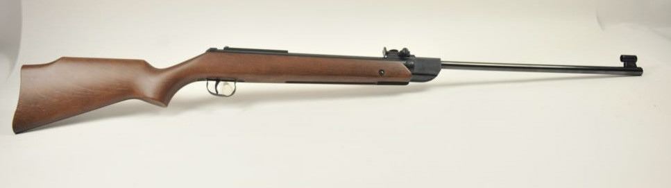 Diana Model 34 air rifle, .22 caliber, Serial #01175613. The rifle is in nearly excellent overall condition with a 19” barrel with a hooded front and adjustable rear sights. The smooth wood stock is in very good conditionwith only light handling marks. The rifle is working well at the time of description. Est.: $150-$300.