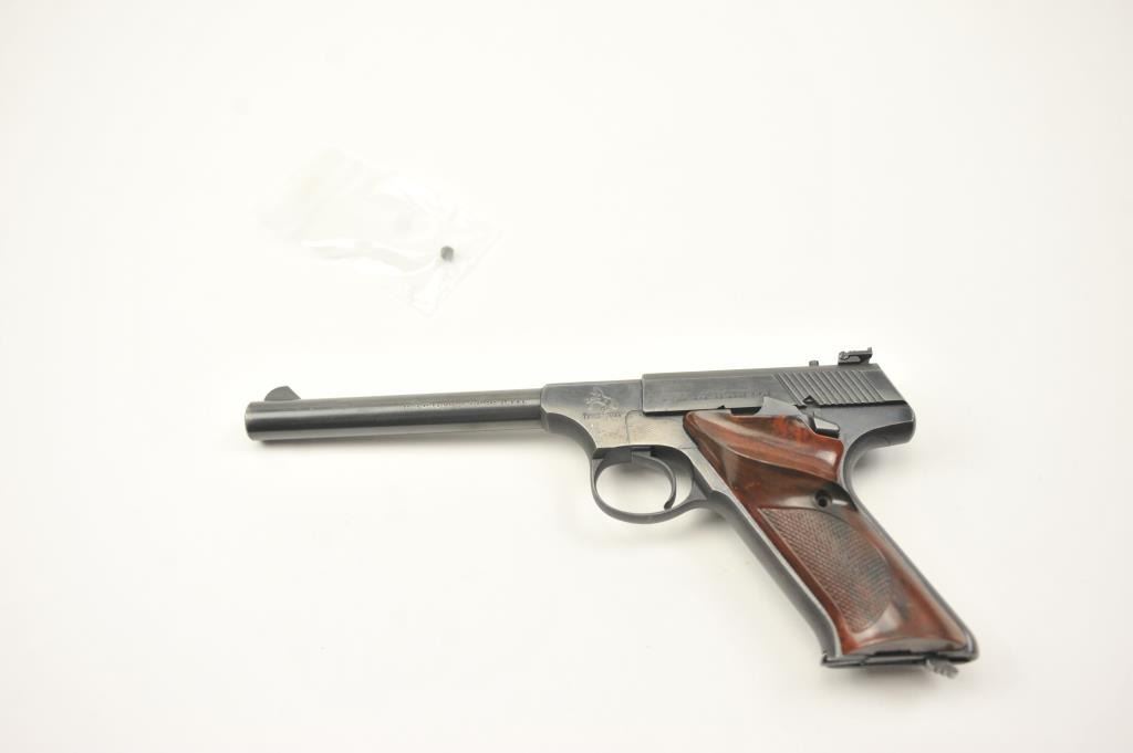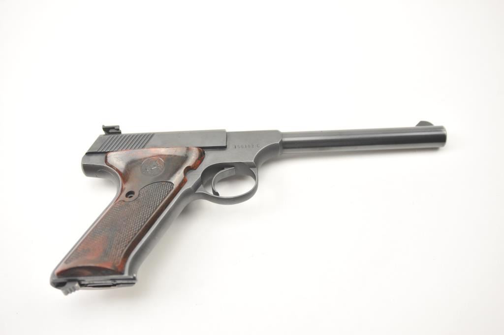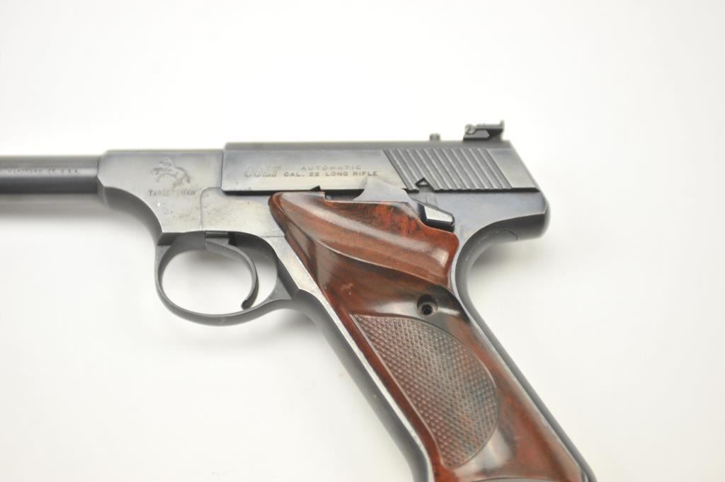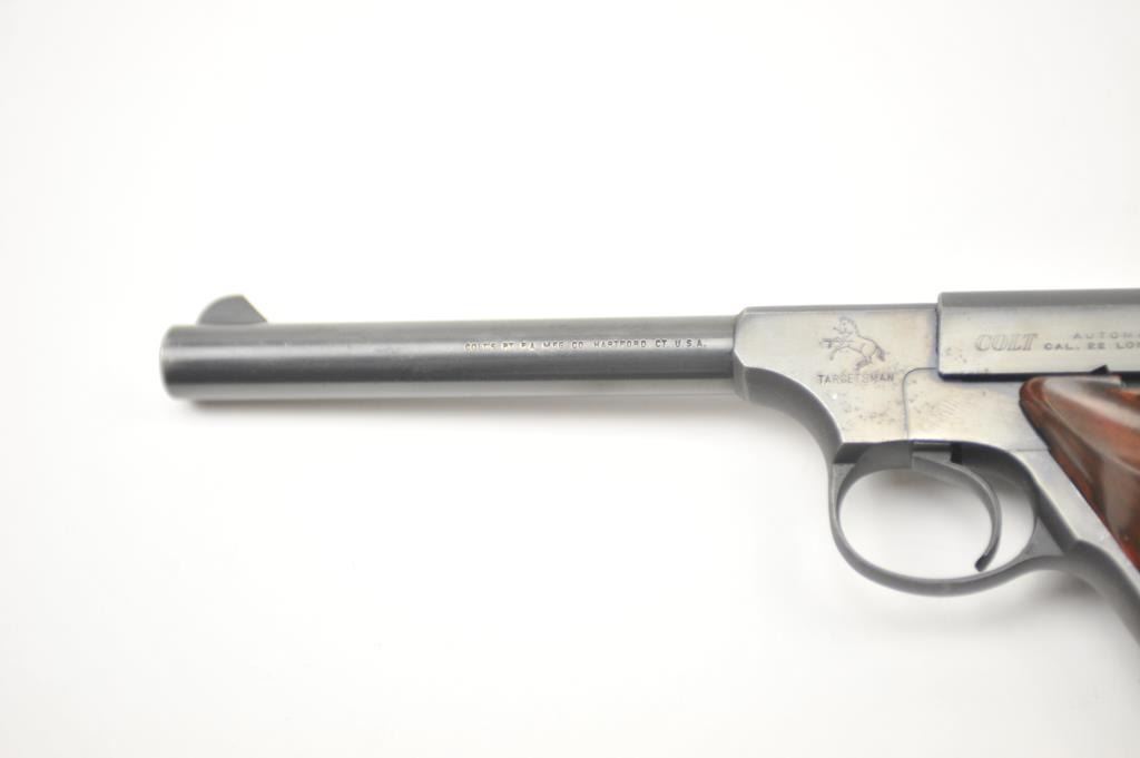 Lot 597 Colt Targetsman Semi-automatic pistol, .22 Long Rifle caliber, Serial #156182-C. The pistol is in