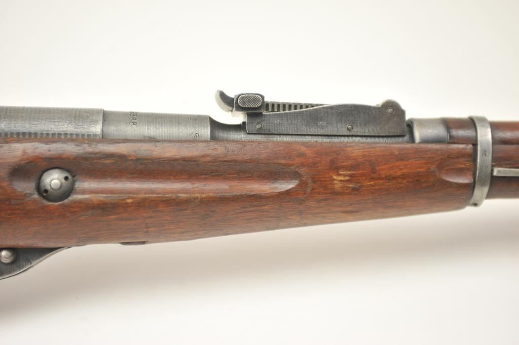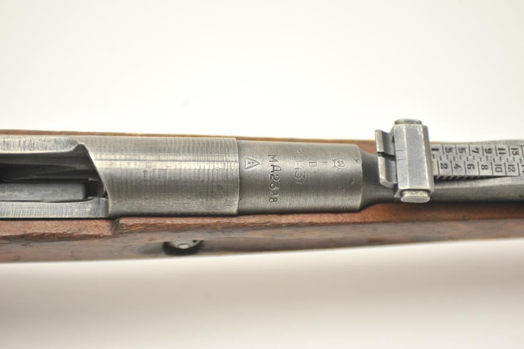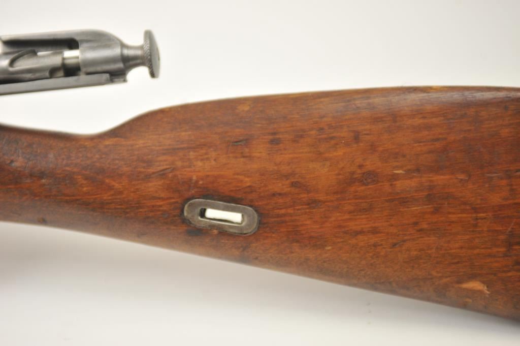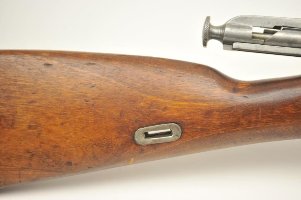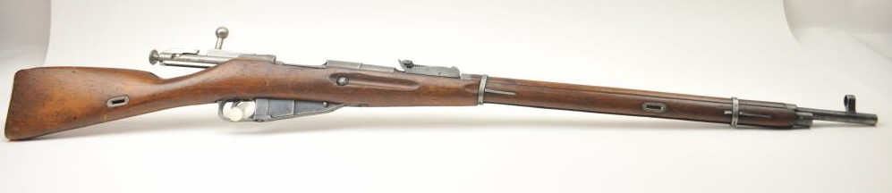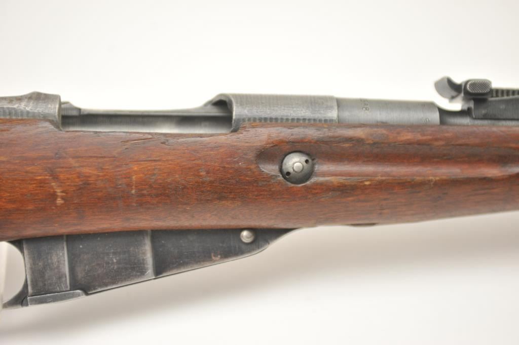 Mosin–Nagant Model 1891/30 bolt action rifle, 7.62 x 54R caliber, Serial #MD 2388. The rifle is in good overall condition with a 29” import marked barrel with a hooded front and military tangent style rear sight. Therifle retains a significant amount of military finish with the front ring dated 1943 with Russian proofs and acceptance marks. The smooth wood stock is in good condition showing moderate to heavy use withdents, mars and scratches associated with service use. The bore is fair and the action works well. Est.: $200-$400. (C+R).