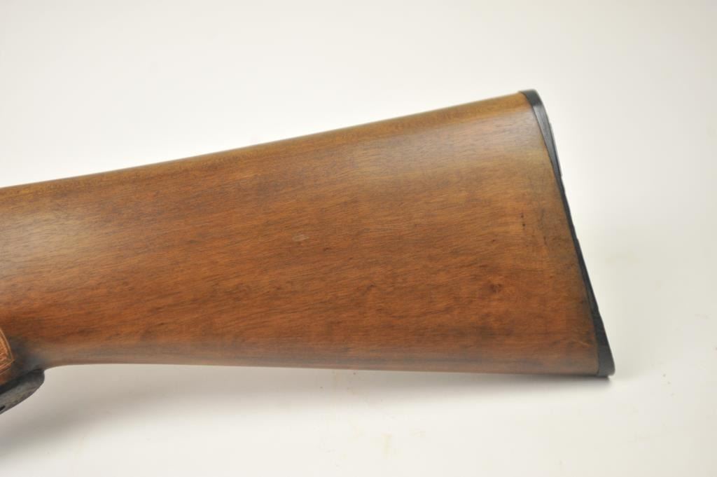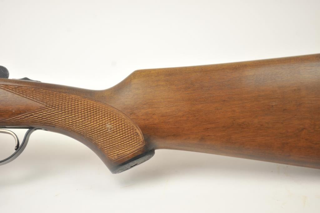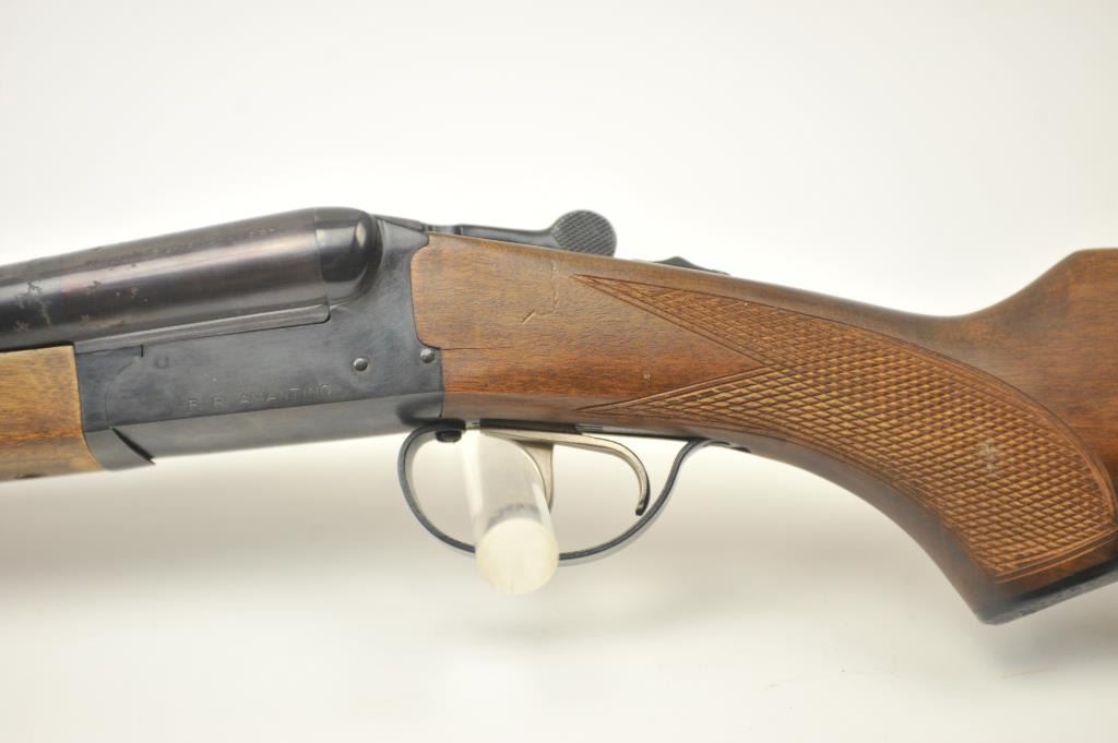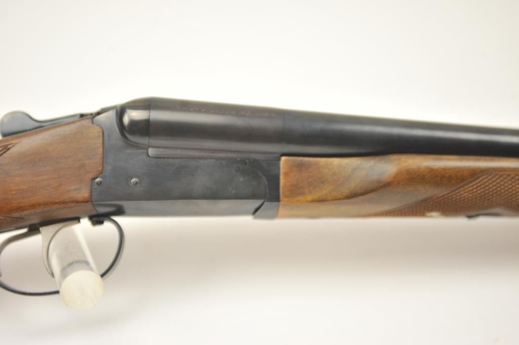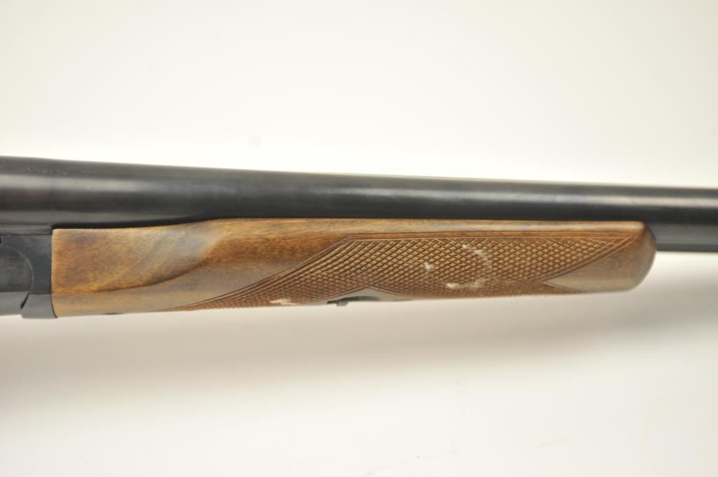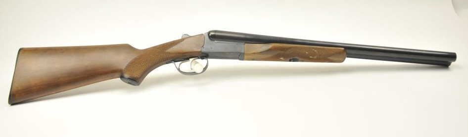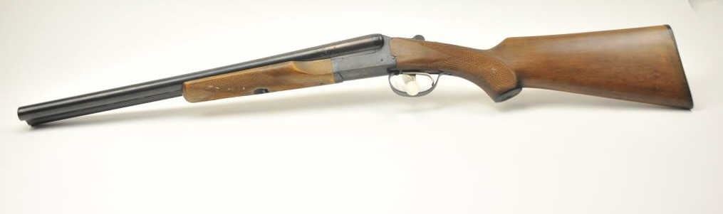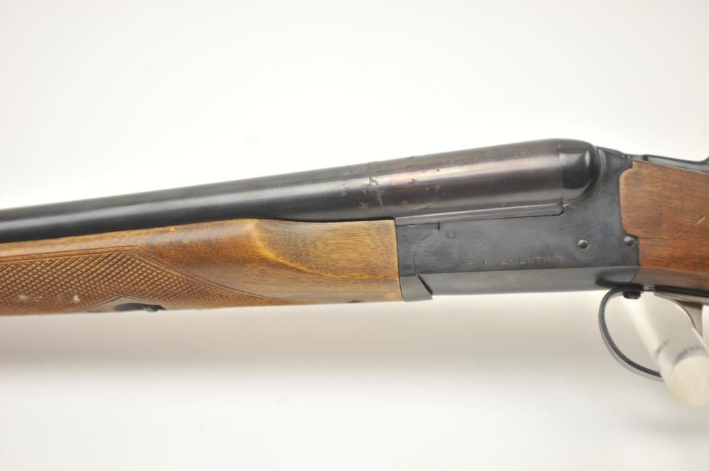 Amantino Coach gun SxS shotgun, 12 gauge, Serial #407141. The shotgun is in very good overall condition with 20” barrels. The shotgun retains nearly all of the blue finish with light surface rust near the breech.The checkered wood stock is in very good condition and ends with a checkered plastic butt plate providing a 14 ¼” LOP to the front trigger. The bores are fair and the action works well. Est.: $250-$500. (Modern).