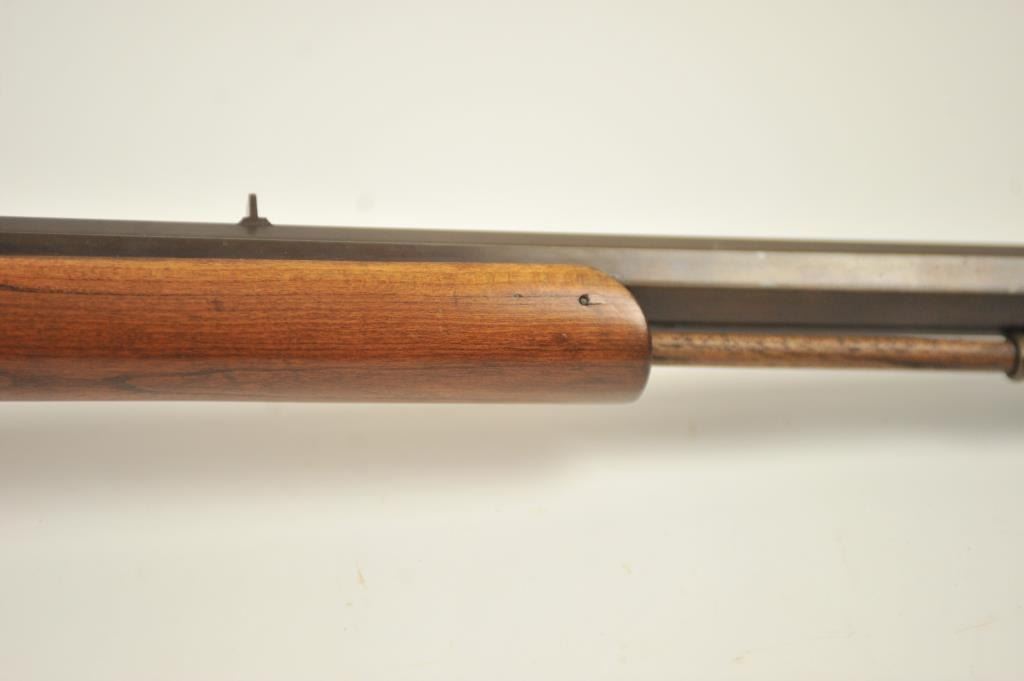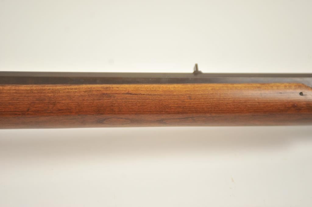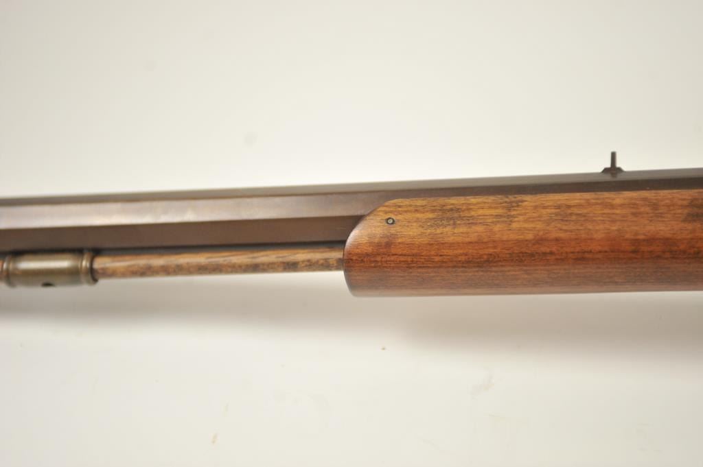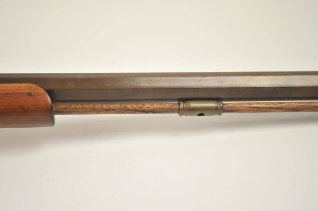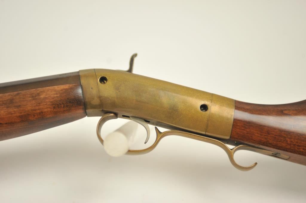 Mowrey Olney of Texas Bicenntenial Model reproduction brass single shot percussion rifle, .50 caliber, #1517 OF 5,000. The rifle is in fine overall condition with 32” octagon barrel with a brass knife blade front sight, brass tipped wooden ramrod, brass frame and trigger guard. The smooth wood stock is in very good condition with a brass schutzen style butt plate. Est.: Est.: $150-$300.