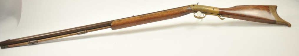 Lot 646 Mowrey Olney of Texas Bicenntenial Model reproduction brass single shot percussion rifle, .50 cali