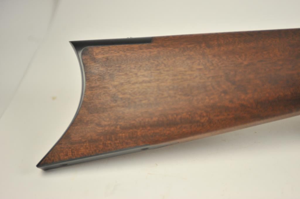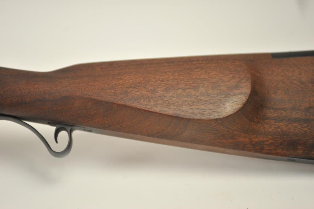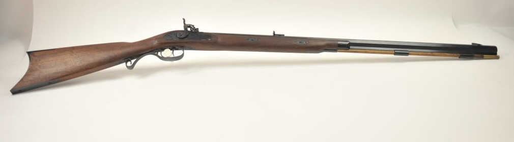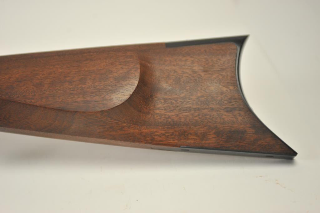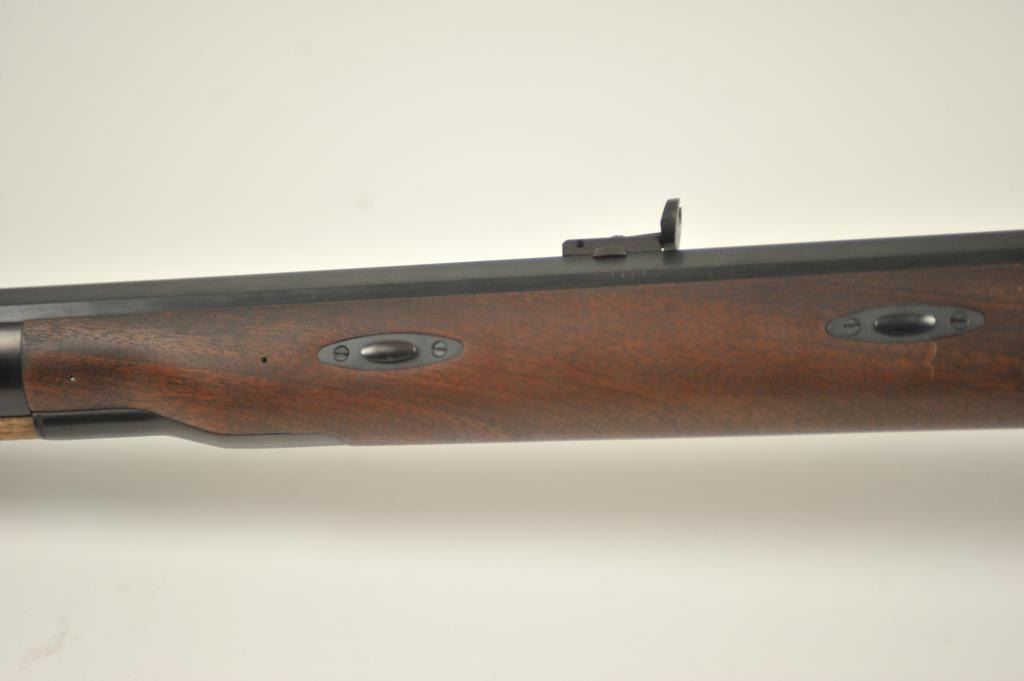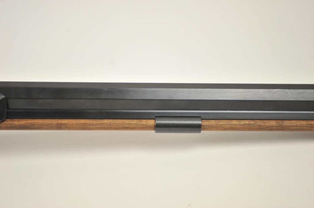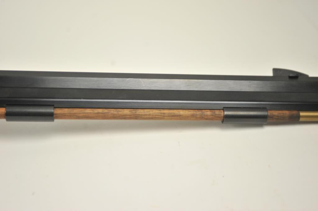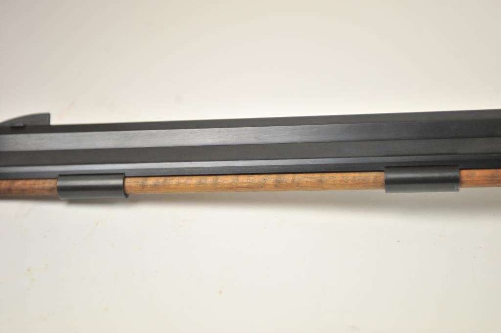 Lyman Reproduction Great Plains Model percussion rifle, .54 caliber, Serial #169090. The rifle is in nearly excellent overall condition with a 32” octagon barrel with a blade front and buckhorn rear sights. The rifle retains nearly all of the blue finish with sharp edges. The side plate is case colored. The smooth wood stock is in nearly excellent condition with a smooth steel crescent butt plate. Est.: $150-$300.