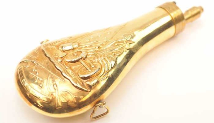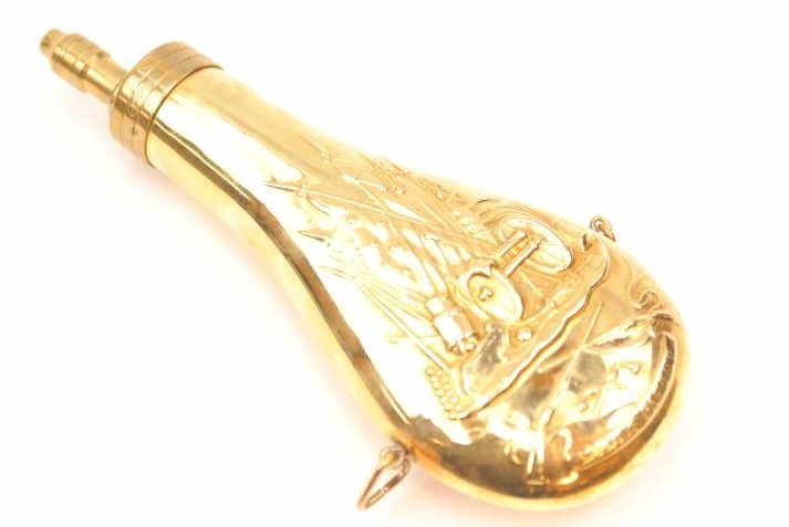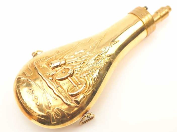 Lot 665 Colt patent marked reproduction powder flask, similar to a Paterson and Walker flask. Est.: $100