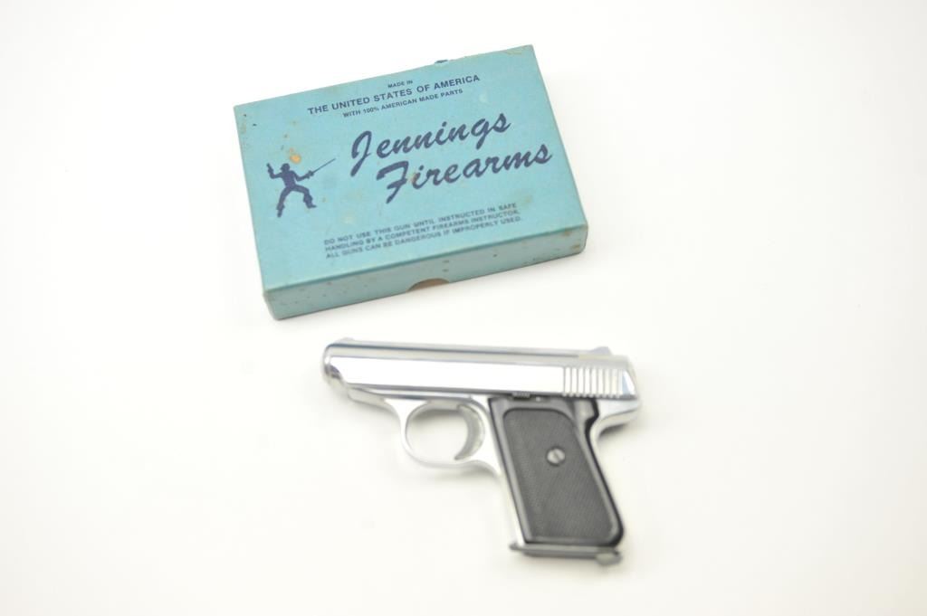 Lot 680 Jennings Model J-22 semi-automatic pistol, .22 Long Rifle caliber, Serial #016454. The pistol is