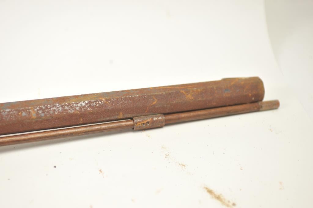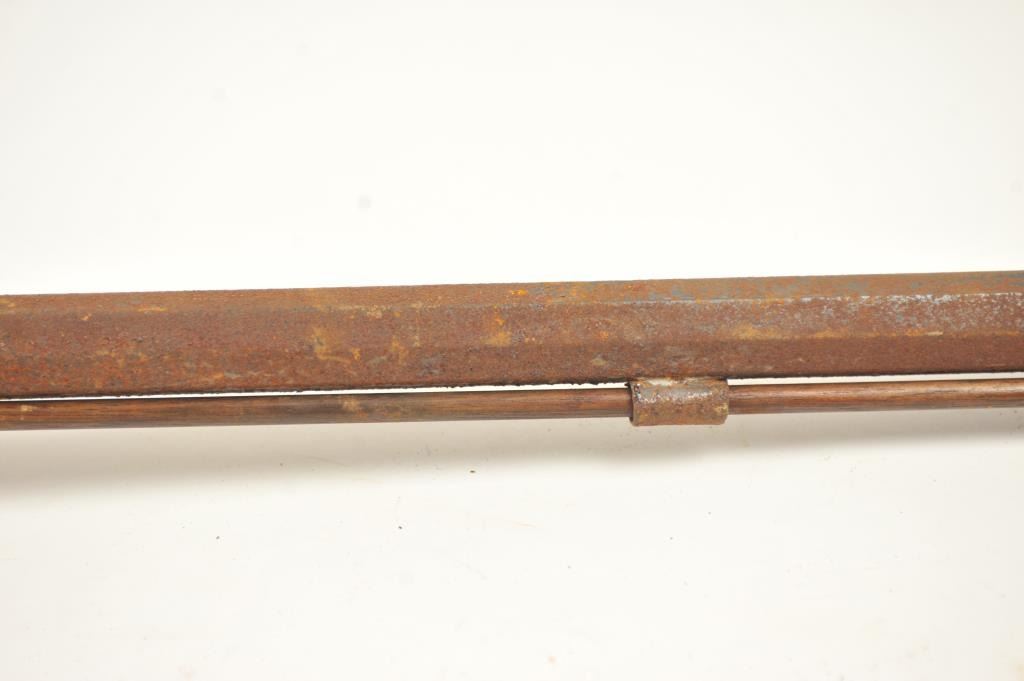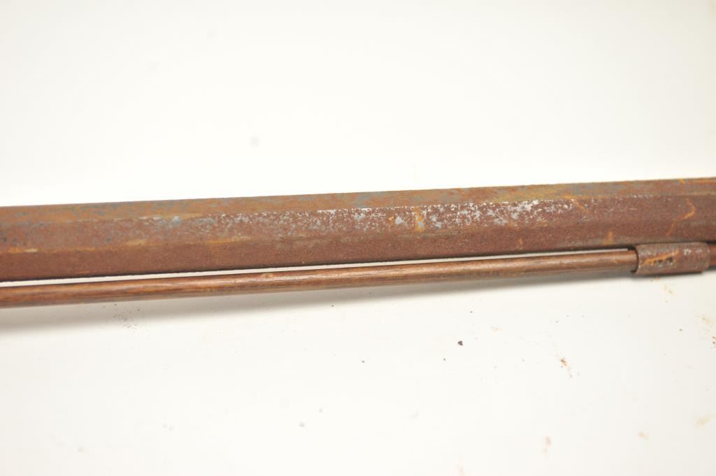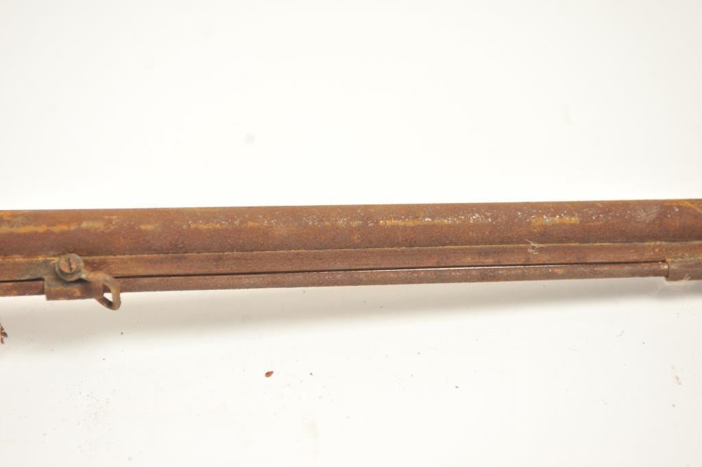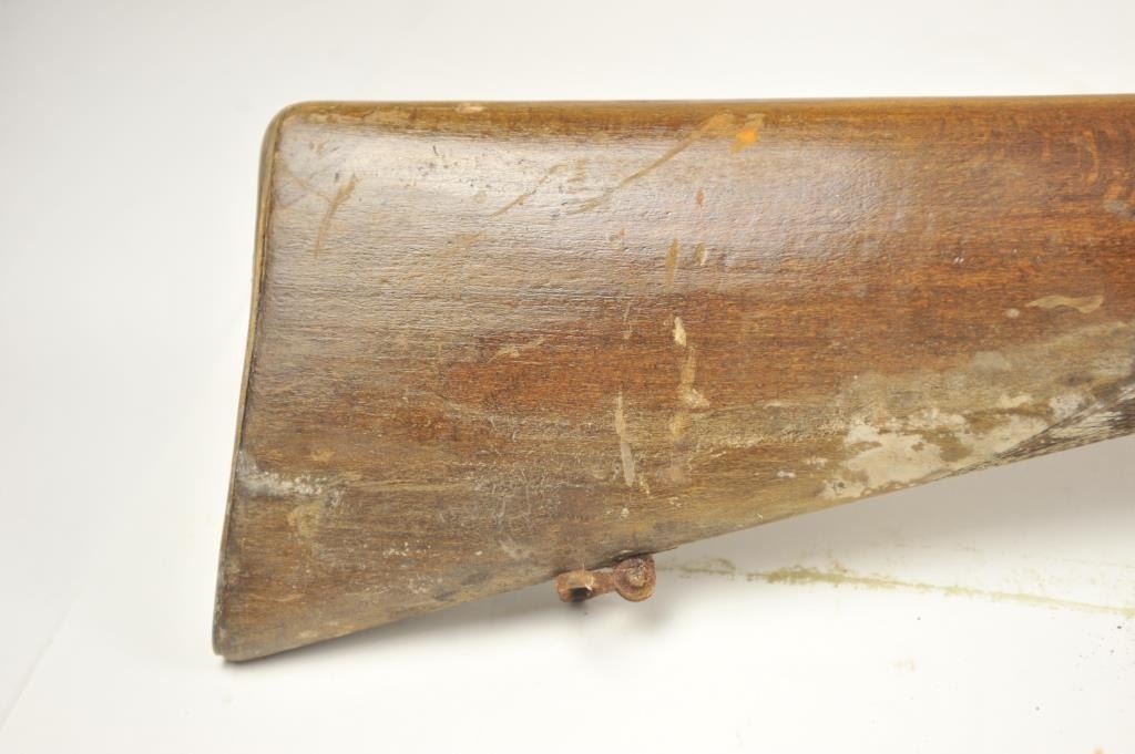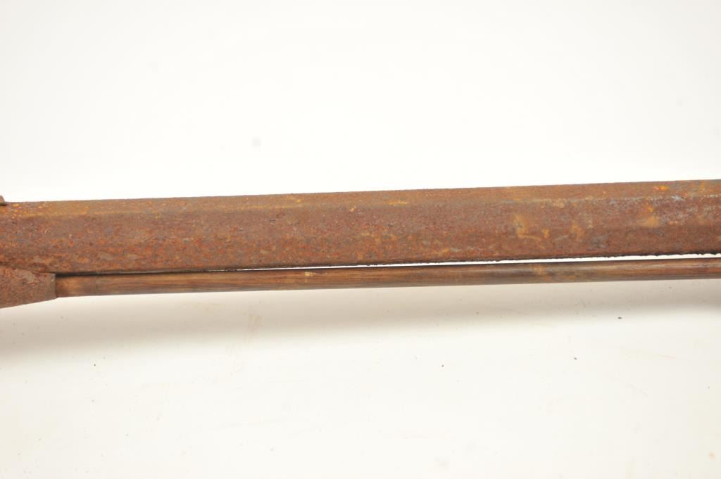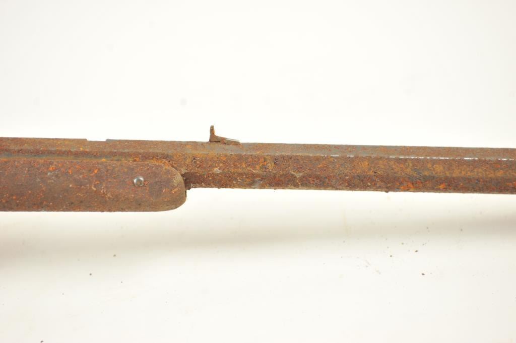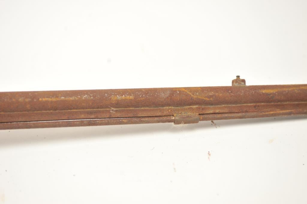 Lot of four rusty relic antique rifles, missing parts in relic condition. The lot includes a Frank Wesson single shot, English Enfield flintlock, Dersch U. Richter percussion Plains rifle and a an unmarkedpercussion single shot, missing the hammer. All four rifles are water damaged and rusted, needing restoration. The rifles are sold as is, where is, with no warranty made or implied. Est.: $150-$300.