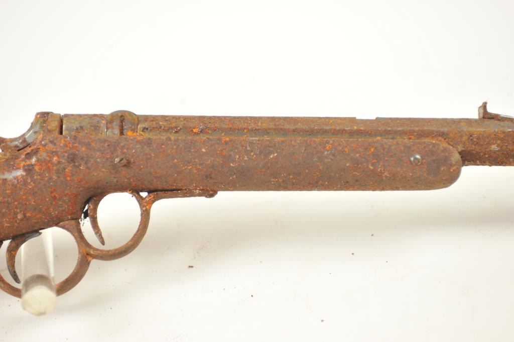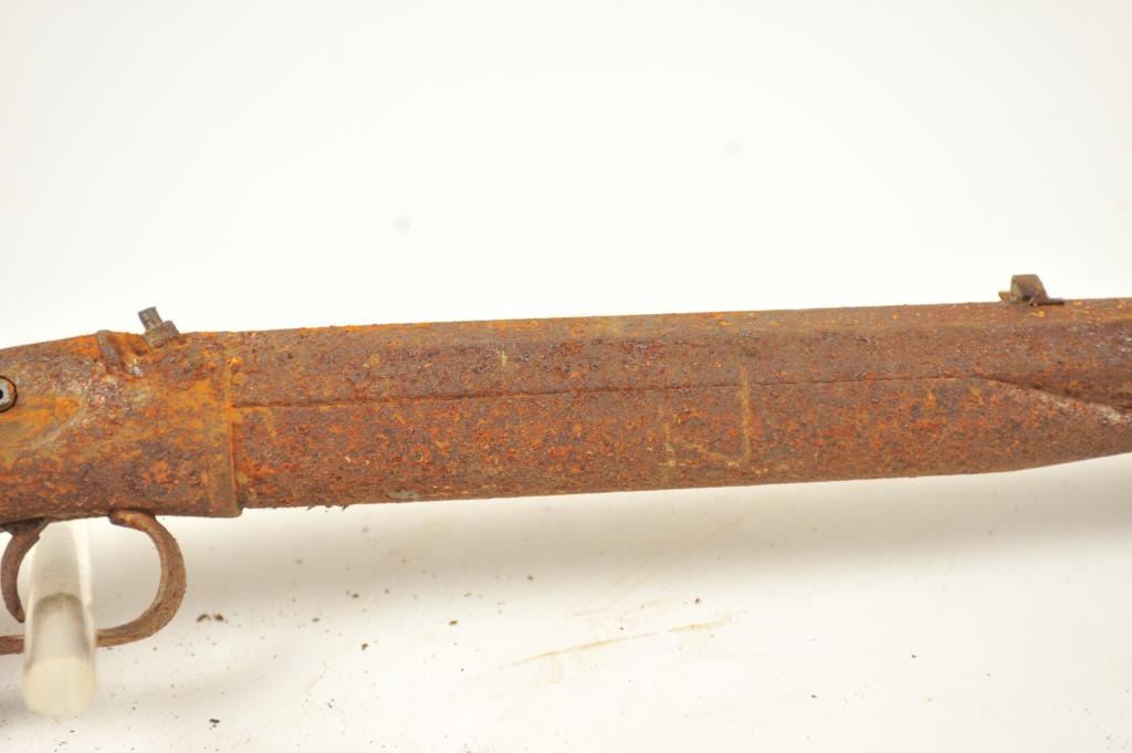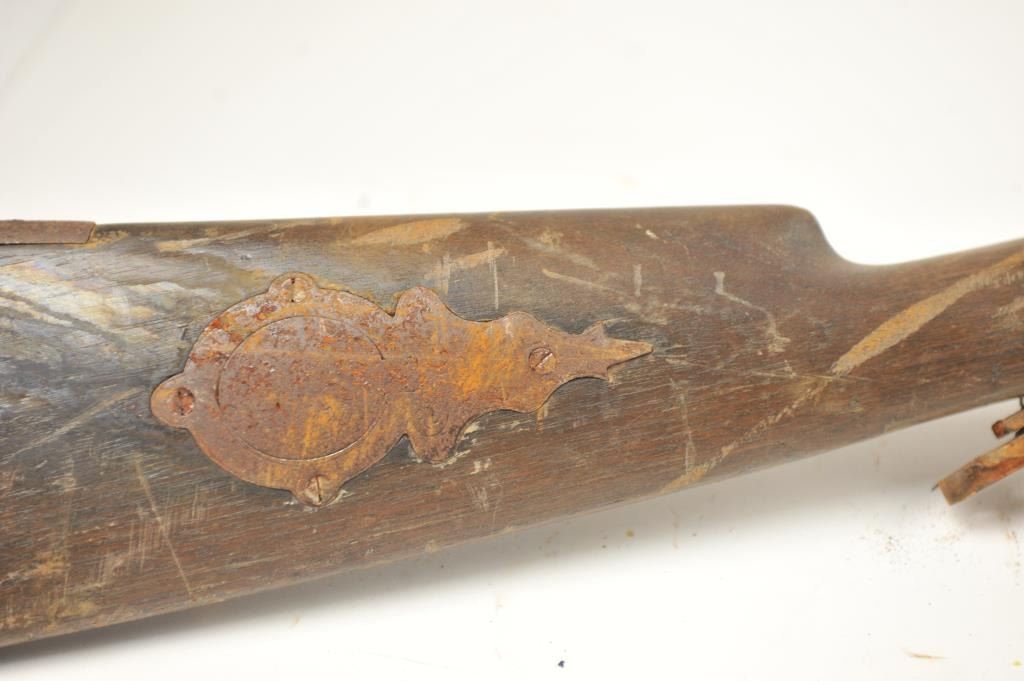 Lot 699 Lot of four rusty relic antique rifles, missing parts in relic condition. The lot includes a Fran
