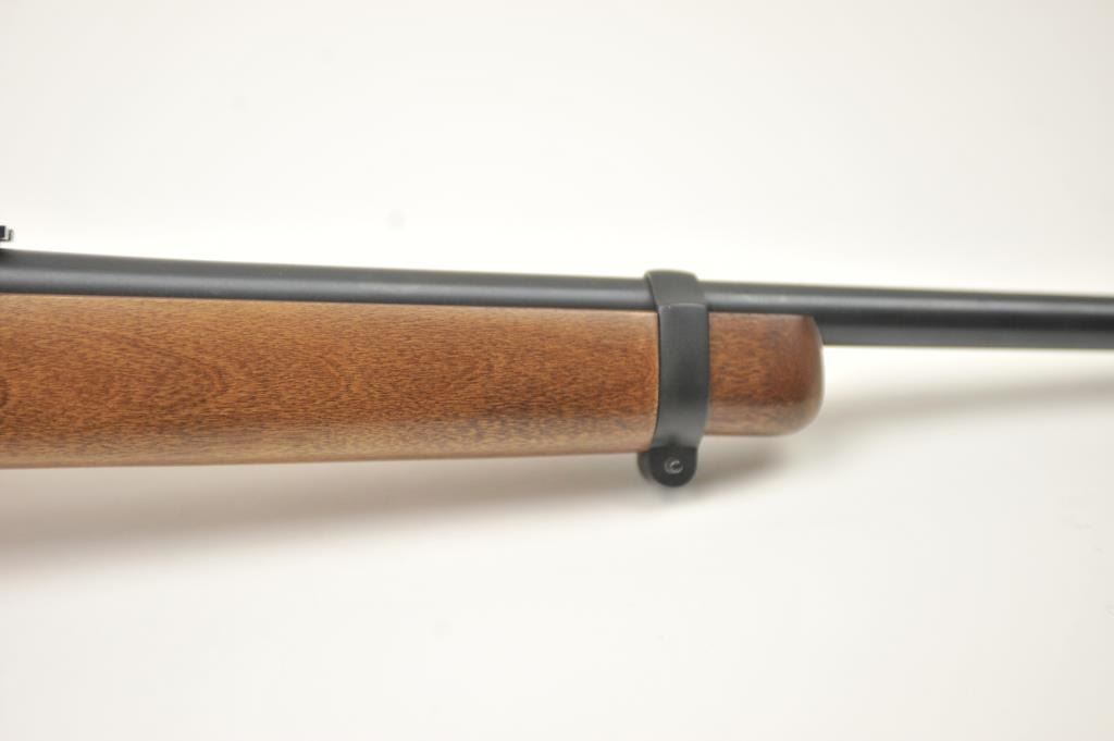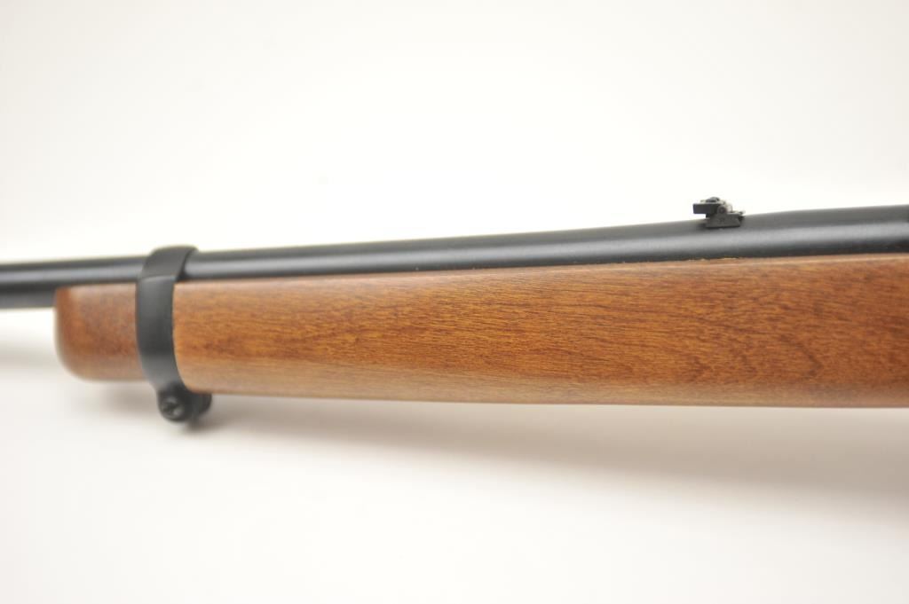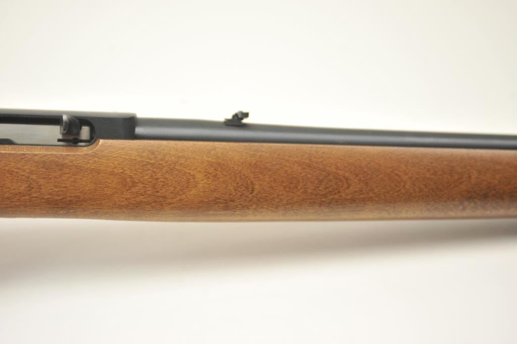 Ruger Model 10-22 semi-automatic carbine, .22 Long Rifle caliber, Serial #231-99602. The carbine is in nearly excellent condition with an 18” barrel with a ramped blade front and folding rear sights. The carbine retainsapproximately 98-99% of the blue finish with only storage marks. The smooth wood stock is in excellent condition showing little use. The bore is very good, the action is crisp and the markings are sharp on this lightlyused Ruger. The lot includes one correct magazine. Est.: $200-$400. (Modern).