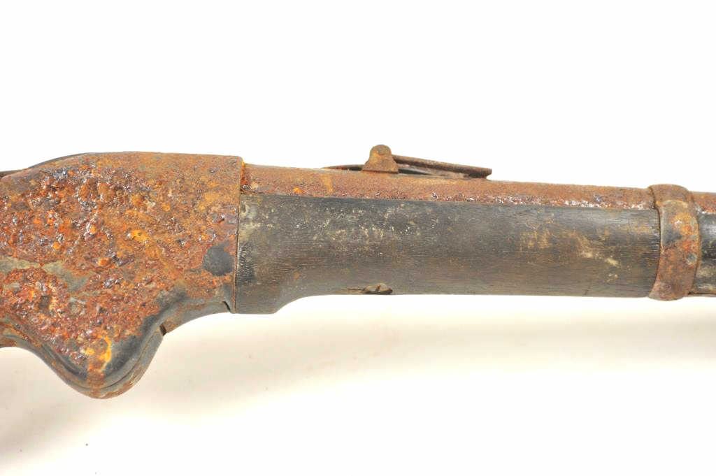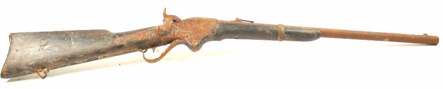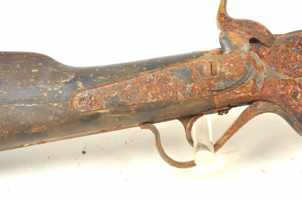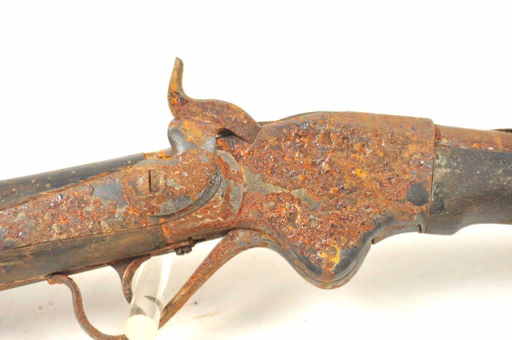 Lot 834 Spencer Saddle Ring Carbine, .52 caliber, Serial #NSNV. The rifle is water damaged and rusted, ne