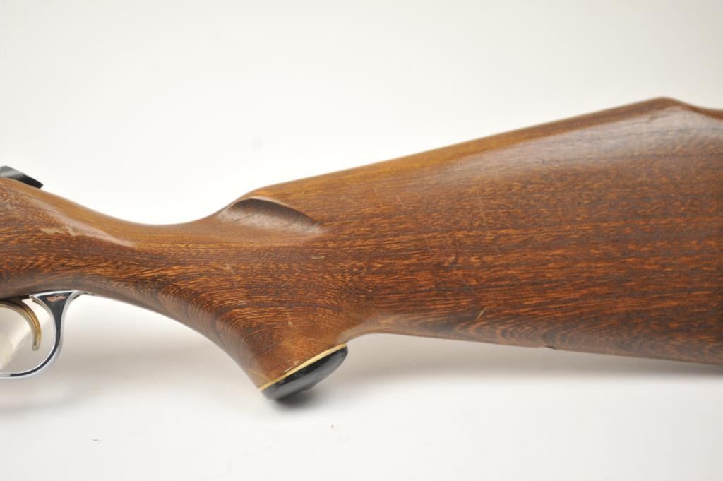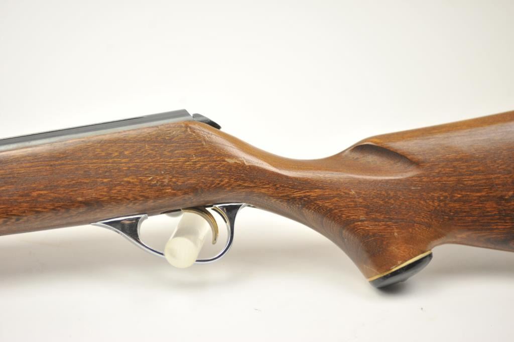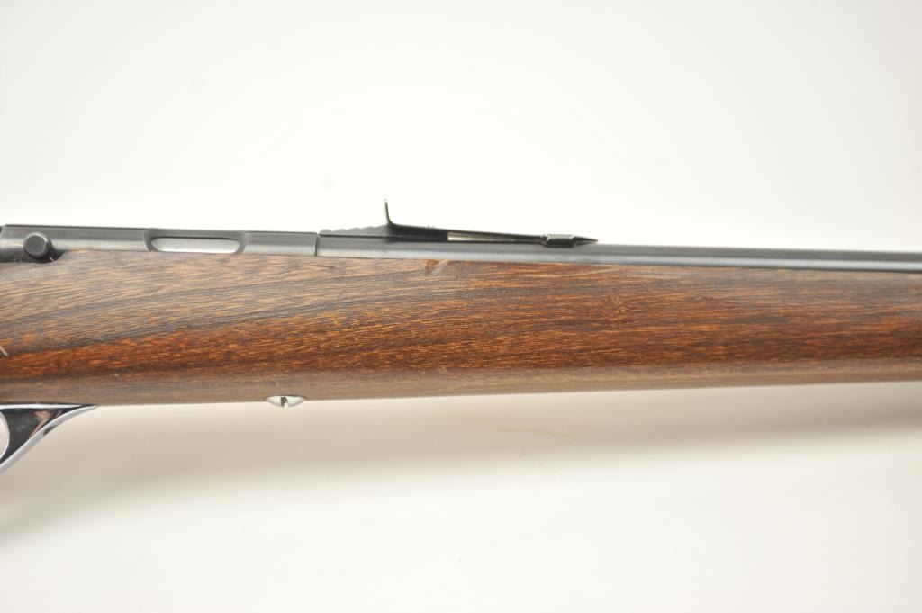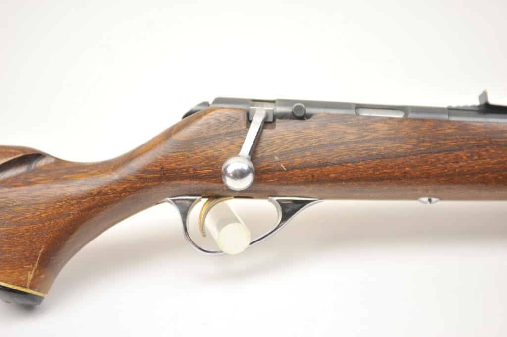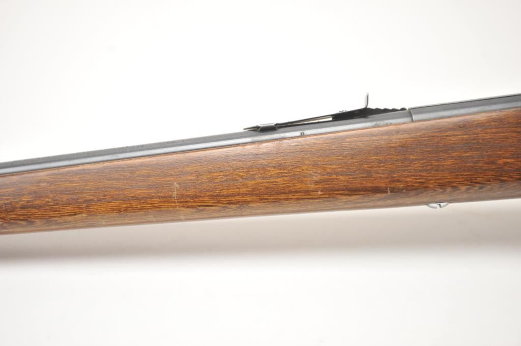 Marlin Model 122 single shot bolt action rifle, .22 S, L, LR caliber, Serial #NSNV. The rifle is in very good overall condition with a 22” barrel. The smooth wood stock is in good condition with small mars andcompressions. The bore is good, action crisp and the markings are legible. Est.: $100-$200. (C+R).