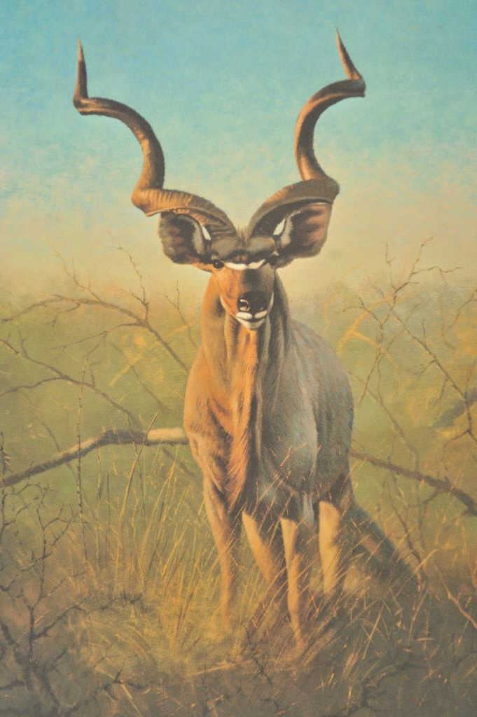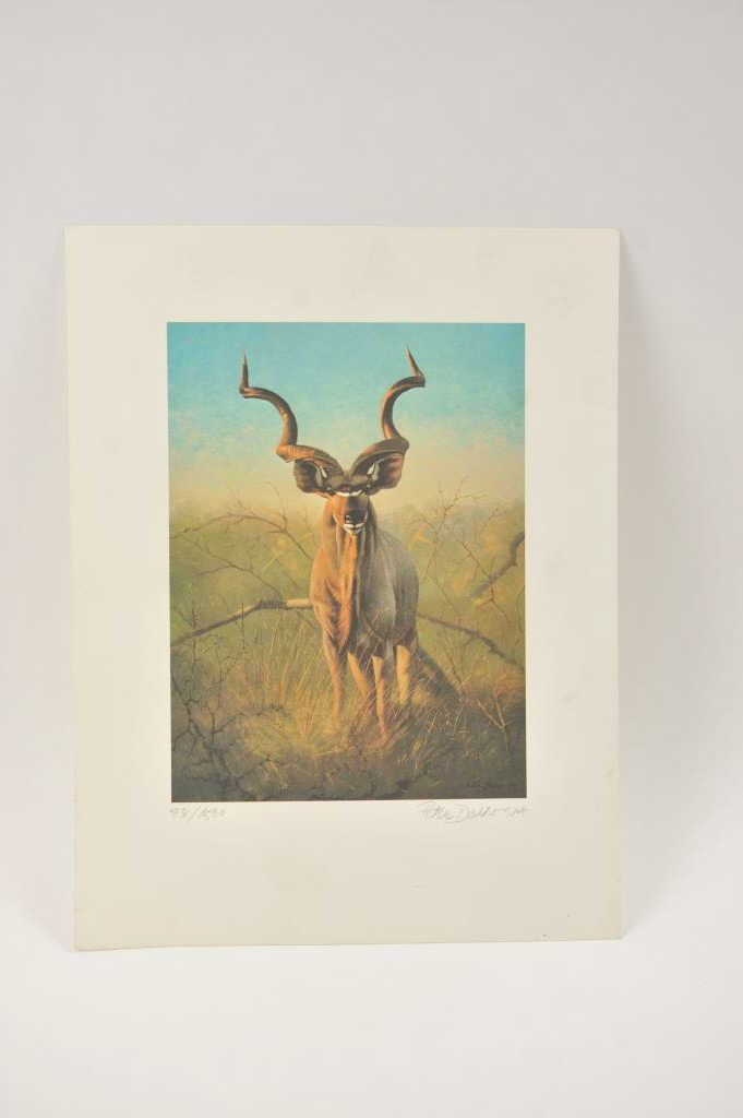 1981 International Wildlife Foundation hand signed and numbered original lithograph entitled, “Greater Kudu” by noted South African wildlife artist Peter Darro. The print is 9 ½” x 15 ½” and is number 831/1500. A nice piece that originated from the liquidation of the Petersen Publishing collection. Est.: $75-$150.