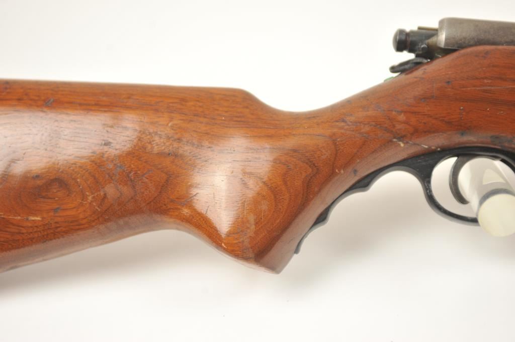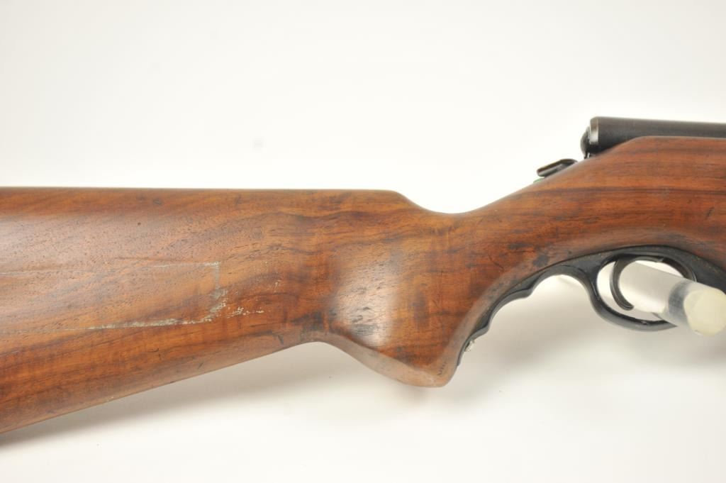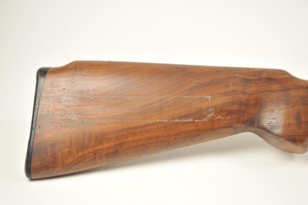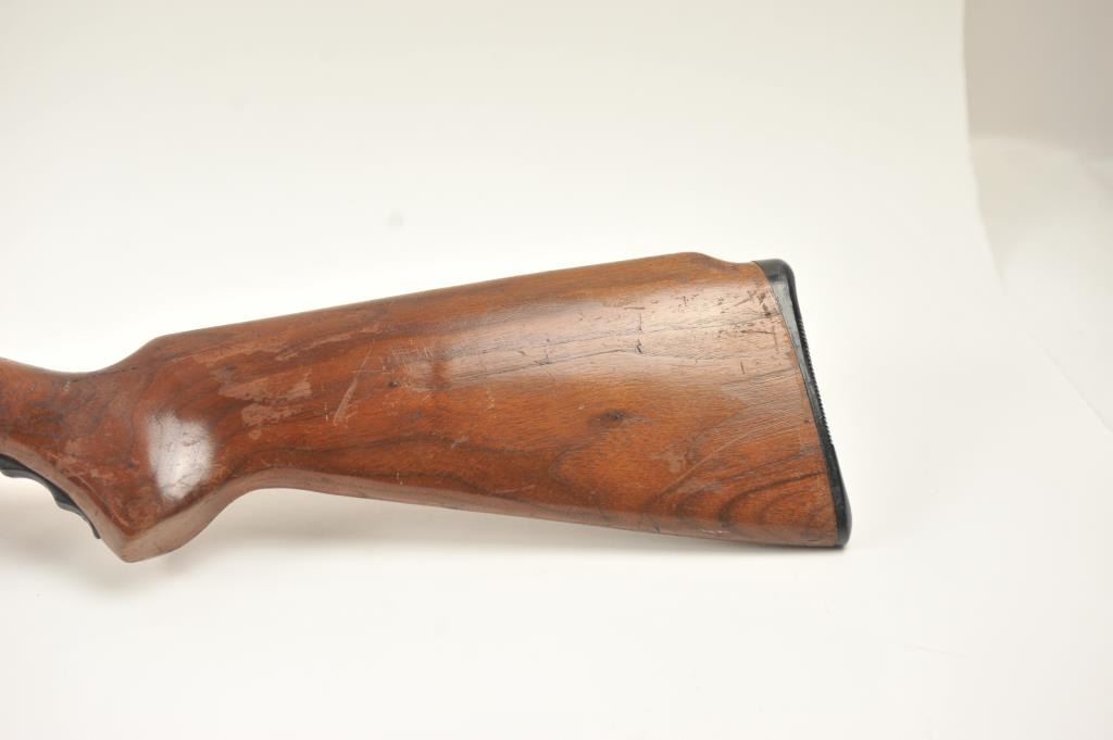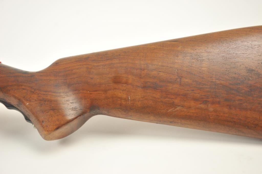 Lot of 410 Ga. Bolt action shotguns, including a Mossberg 183D B, #NSNV, 410 Ga., 24” barrel, with Mossberg external modified choke, blued finish, bead front sight, plain wood stock with hard rubber recoil pad.Shotgun is in fair to good condition overall, showing approximately 30-50% original finish, bore is good, action is good. Stock is fair to good with a small crack at the wrist and adhesive residue which shouldclean. Second shotgun is a Mossberg Model 183D A, 410 Ga., #NSNV, 24” barrel, with Mossberg external full choke, blued finish, bead front sight, plain wood stock with hard rubber recoil pad. Shotgun is in fair togood condition overall, showing approximately 20-30% original finish with minor pitting, bore is good, action is good. Stock is fair to good with a repaired crack at the wrist. (C&R/PPT) Est. $100-200
