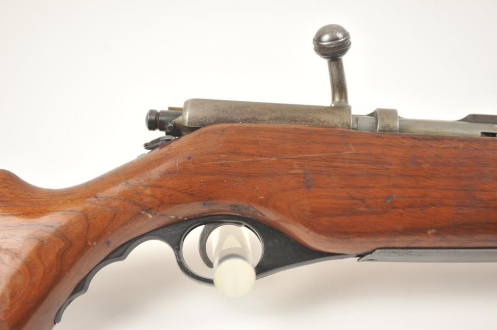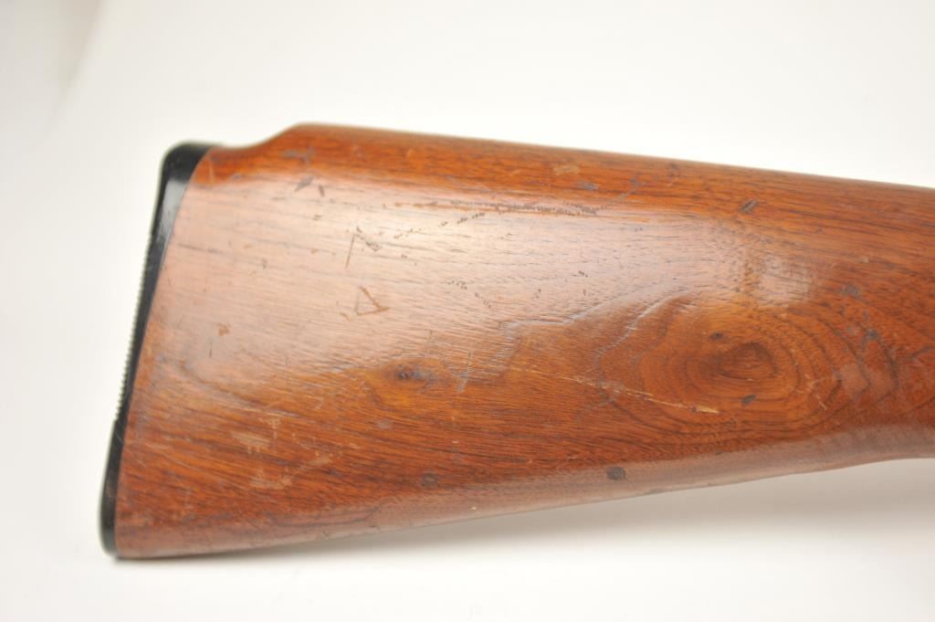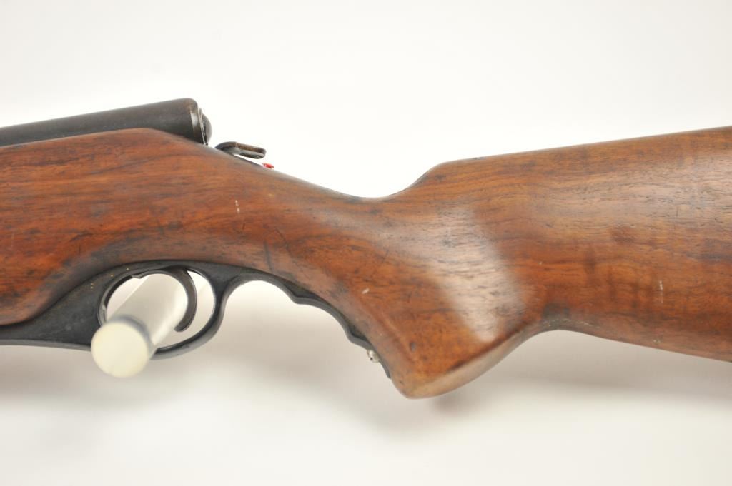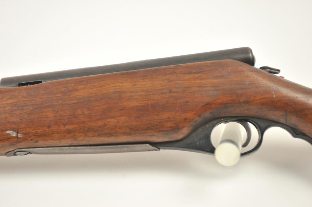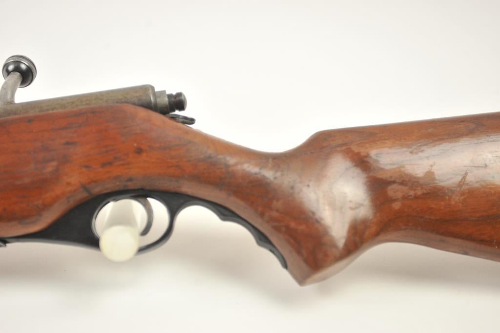 Lot of 410 Ga. Bolt action shotguns, including a Mossberg 183D B, #NSNV, 410 Ga., 24” barrel, with Mossberg external modified choke, blued finish, bead front sight, plain wood stock with hard rubber recoil pad.Shotgun is in fair to good condition overall, showing approximately 30-50% original finish, bore is good, action is good. Stock is fair to good with a small crack at the wrist and adhesive residue which shouldclean. Second shotgun is a Mossberg Model 183D A, 410 Ga., #NSNV, 24” barrel, with Mossberg external full choke, blued finish, bead front sight, plain wood stock with hard rubber recoil pad. Shotgun is in fair togood condition overall, showing approximately 20-30% original finish with minor pitting, bore is good, action is good. Stock is fair to good with a repaired crack at the wrist. (C&R/PPT) Est. $100-200