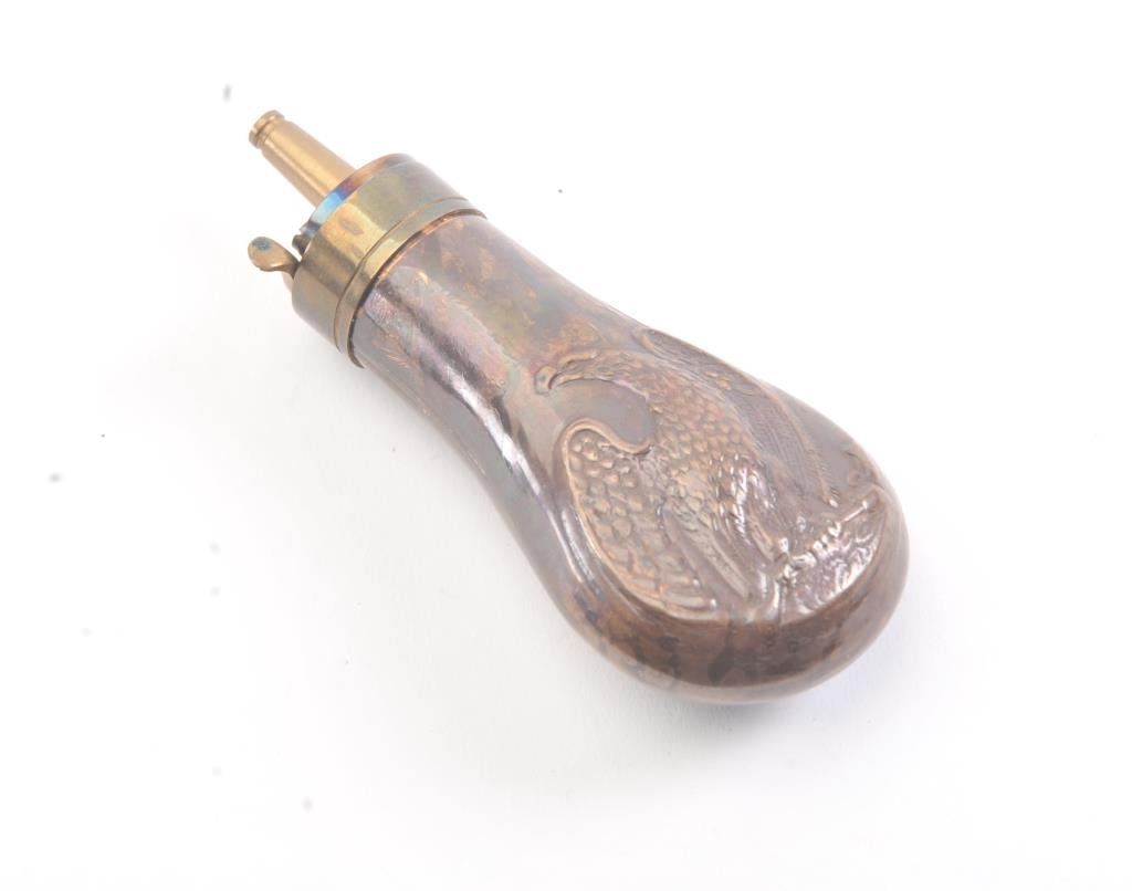 Lot 876 Early pocket model eagle flask appearing to be excellent and original but restored. “Bob” Allen co
