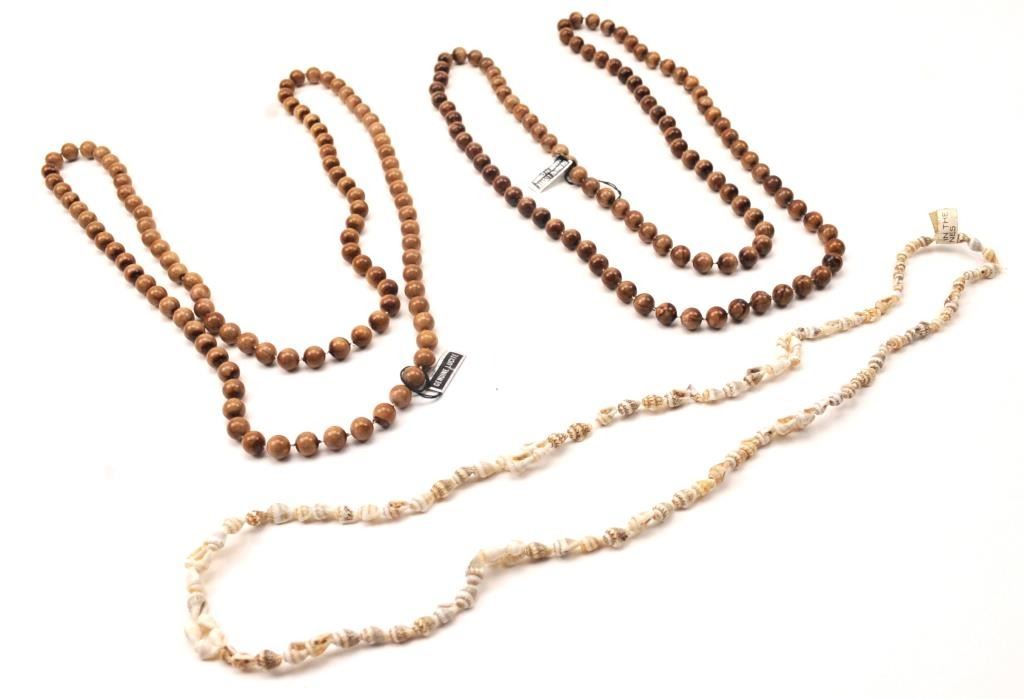 Lot 879 A collection of 2 genuine Lucite bead and a miniature conch shell necklace longer than 30 inches