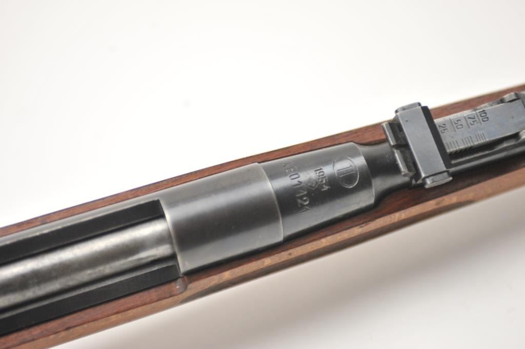 Polish Model WZ-48 bolt action single shot training rifle, .22 caliber, Serial #AB01121. The rifle is in overall good to very good condition with a good bore, crisp action, good markings, scattered erosion and spots of pitting confined primarily to the barrel, good+ stock with considerable old small mars and dings from carry and storage. The rifle is dated 1954 on the front ring. Est.: $250-$500 (C+R).