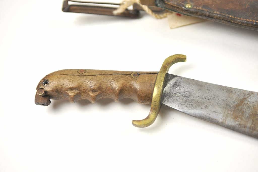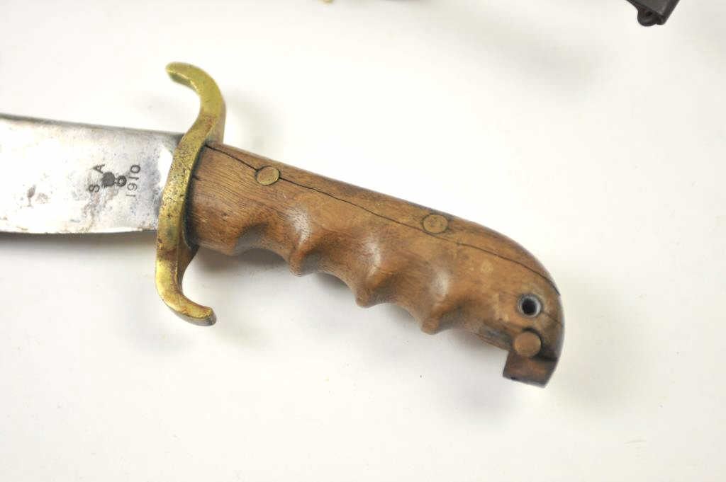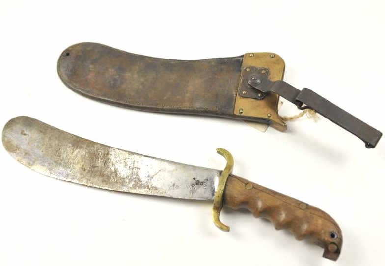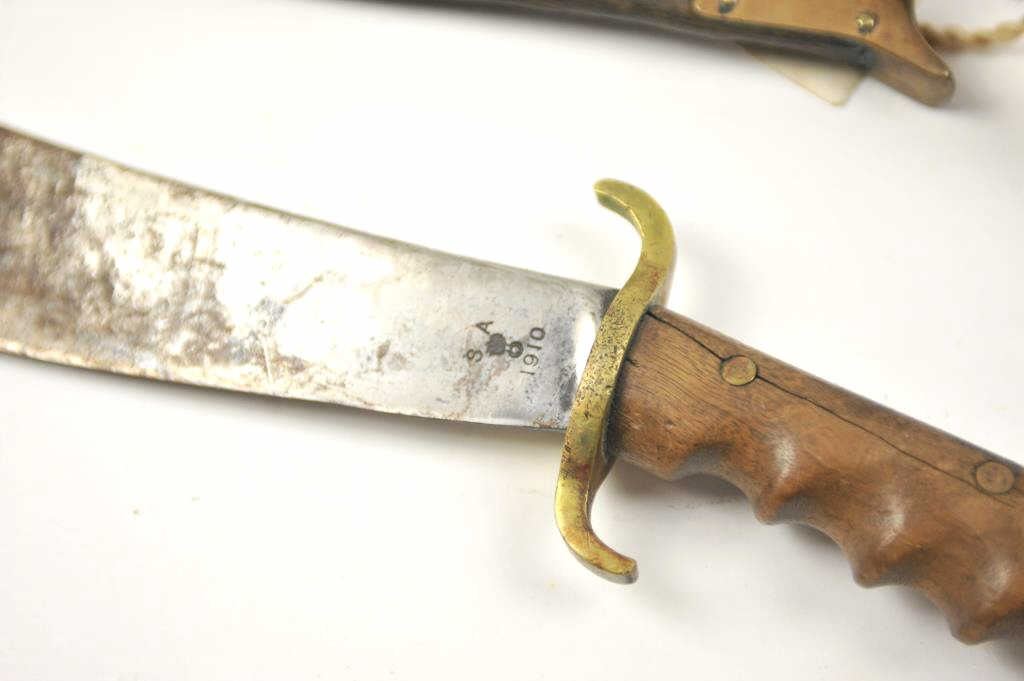 Lot 902 U.S. Hospital Corps Bolo knife with scabbard dated 1910 and S.A. marked. The scabbard is also dat