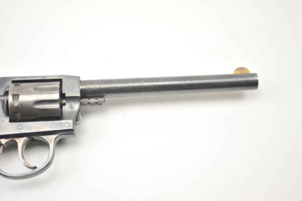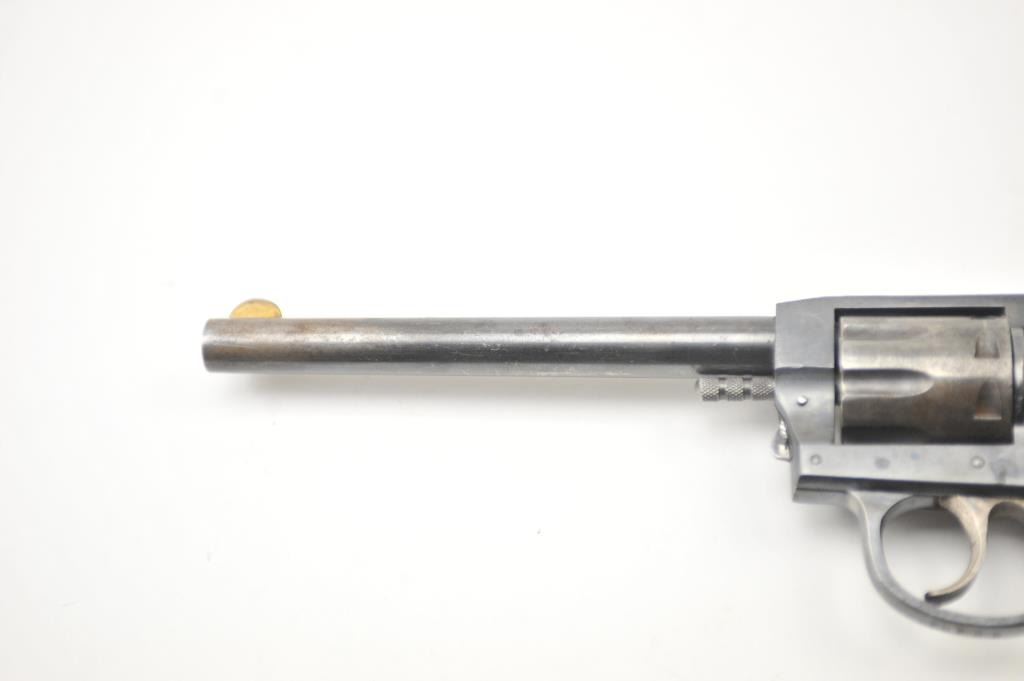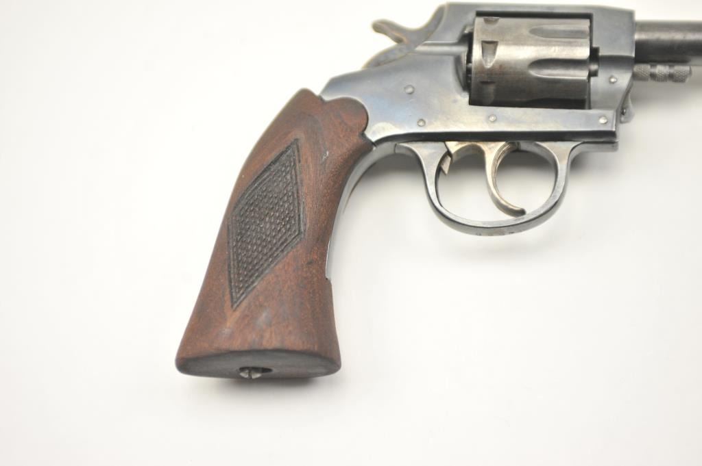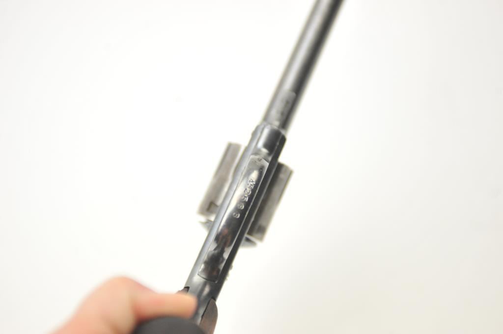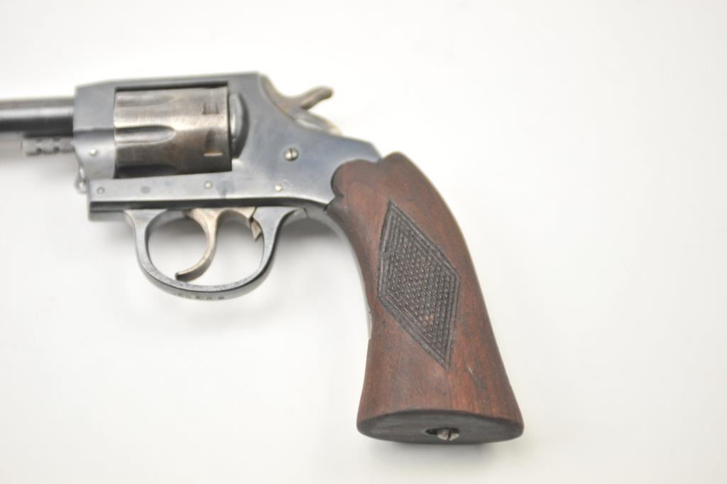 Iver Johnson Target Sealed 8 DA revolver, .22 caliber, Serial #M52588. The pistol is in very good overall condition with a 6” barrel. The pistol retains the majority of the blue finish with wear on the barrel and areas oflight surface erosion. The cylinder has gone to silver patina while the hammer and trigger show muted case hardening. The checkered wood grips are in good condition. The bore is fair, the action functions andthe markings are legible. Est.: $75-$150. (C+R/PPT).
