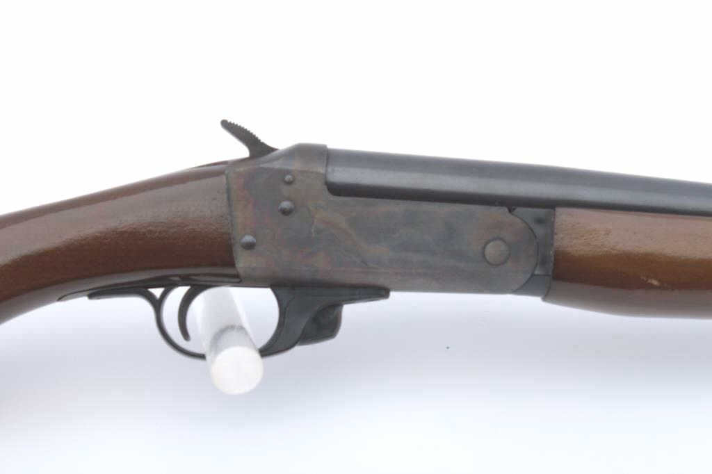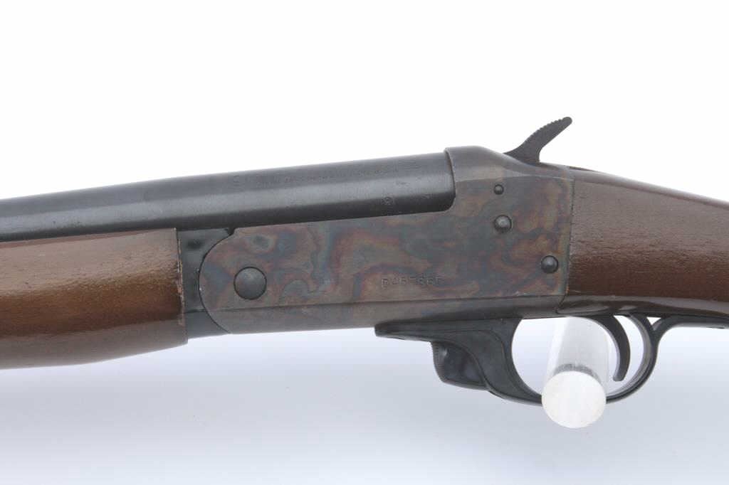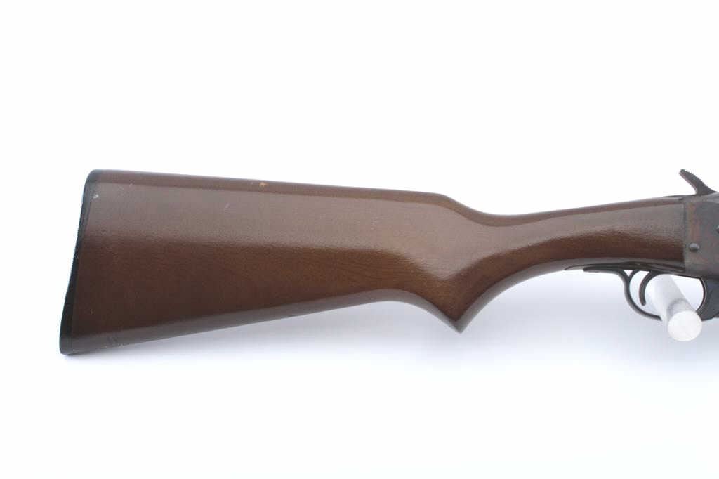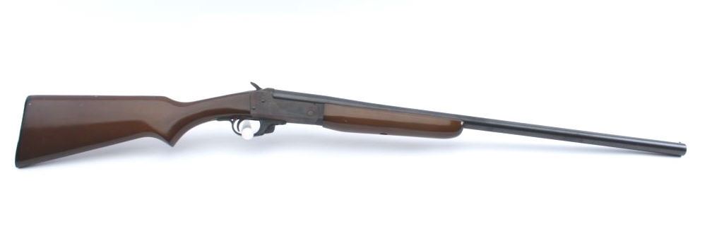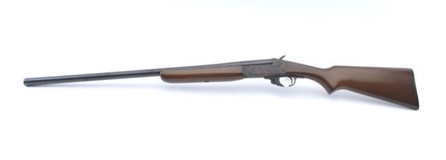 Stevens Model 9478 single shot shotgun, 12 gauge, Serial #D457865. The shotgun is in very good overall condition with a 28” barrel. The barrel retains the majority of the blue finish with some light surface ruston the left side. The receiver shows muted case colors. The smooth wood stock is in very good condition ending with a hard plastic butt plate providing a 14 ¼” LOP. The bore is good, the action crisp and themarkings are sharp. Est.: $50-$100. (Modern).