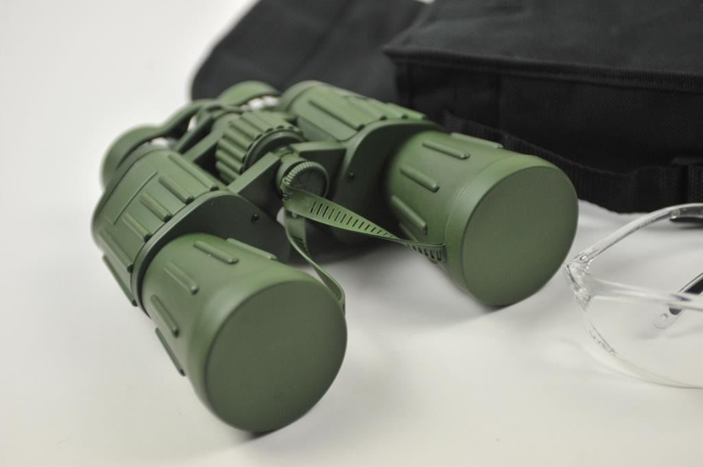 Lot 991 Lot of optics and shooting supplies. The lot includes a set of Perrini Night Prism 60 x 50mm armo
