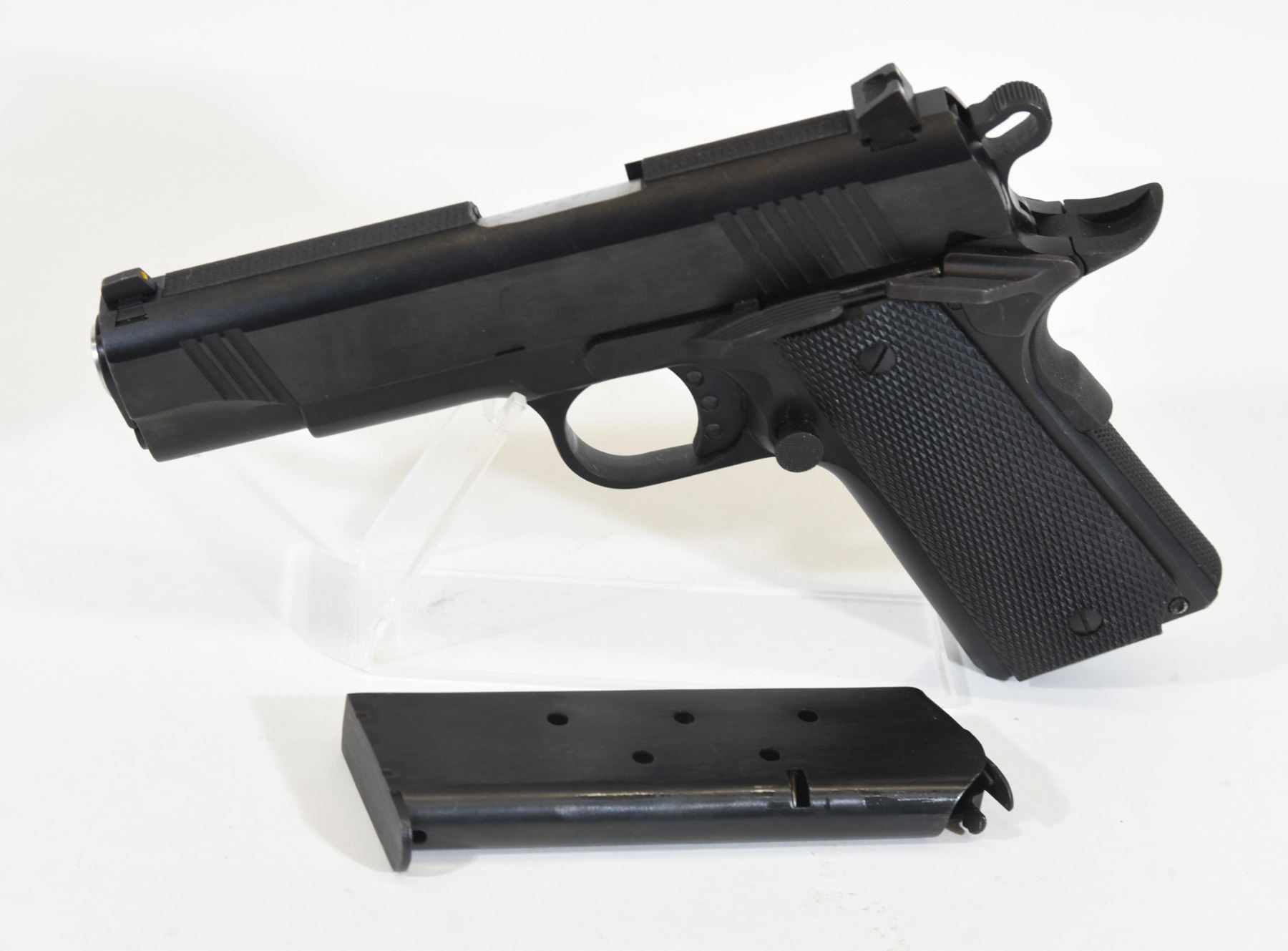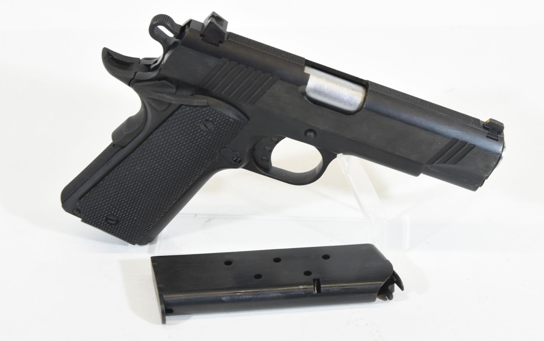 Restricted, semi-automatic, 45 ACP, 109 mm barrel, SN BB09544. Bluing is good. Grips are very good. Bore is excellent. Has one magazine.