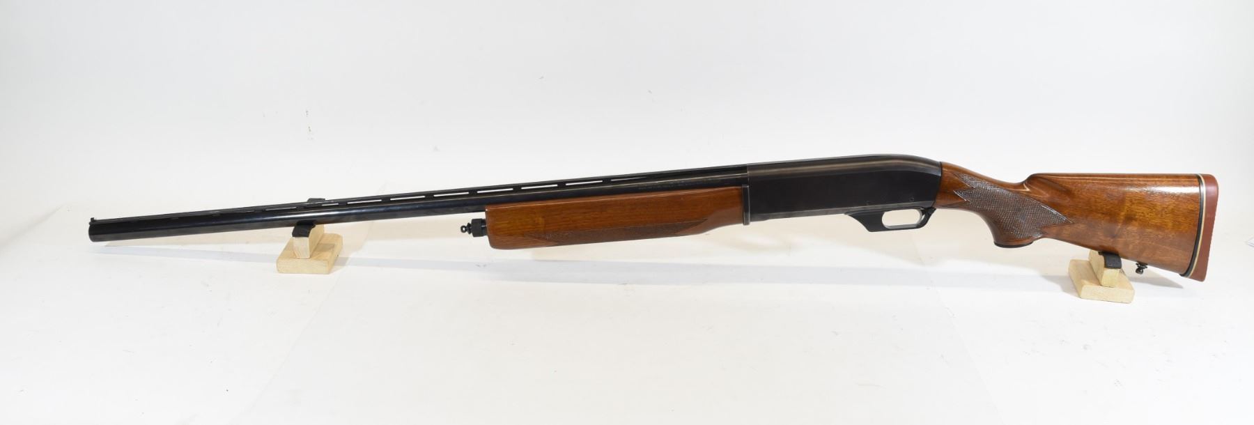 Non-restricted, semi-auto, 10 gauge 3 1/2 magnum, 31" smooth bore vent ribbed barrel, SN100012610. Wood stock is very good with few wear marks. Bluing on barrel is very good. Bore is good.