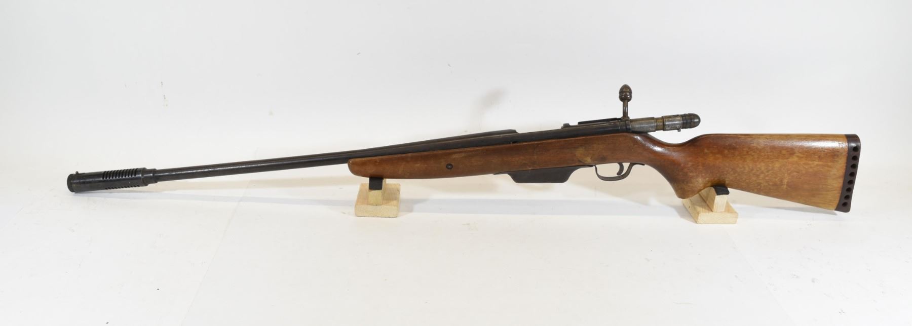 Non-restricted, 20 gauge. Bolt action. 26". Wood is worn. Bore has some pitting. Bluing turning brown and has rust spots.