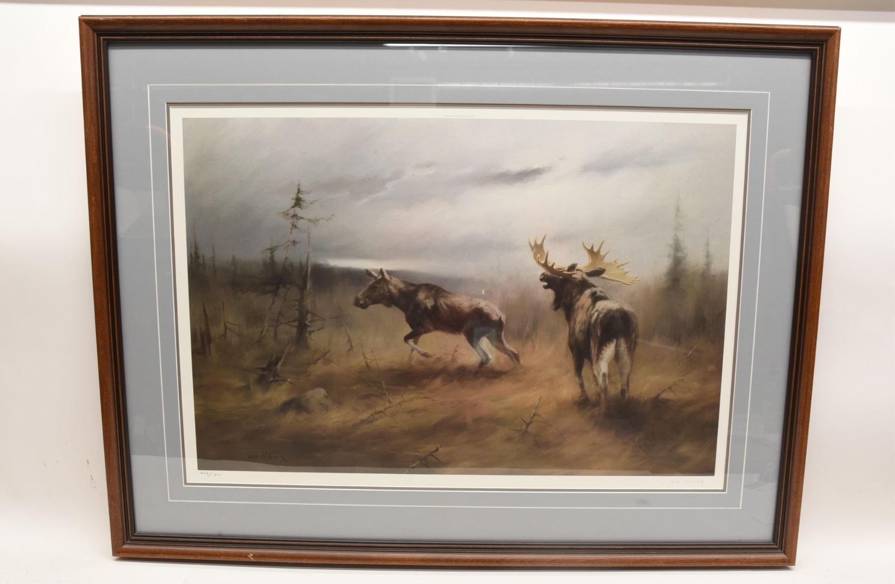 Framed print of 2 moose. 203/600. 35" x 26.5".
