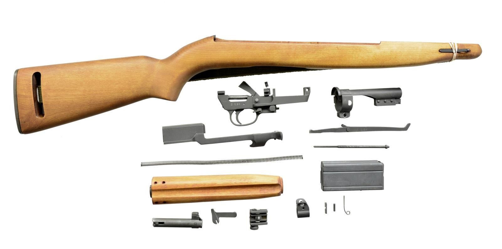 Cal. 30 Carbine S# S290. Extremely desirable Stemple M2 conversion kit utilized to legally convert your M1 carbine to an M2 host. Includes operating slide, bolt, selector lever & spring, trigger housing assembly complete w/ hammer, sear & mag. catch. Also included are op rod, spring & guide, bbl. band & bayonet lug assembly, front & rear sights, wooden stock & top handguard w/ green canvas sling. MAGS: 1-20 rd. mag. THIS IS A NATIONAL FIREARMS ACT MG REQUIRING BATF TRANSFER BEFORE TAKING POSSESSION. FULLY TRANSFERABLE. (03-1469/JZ). MODERN. CLASS III. $4,000-7,000.