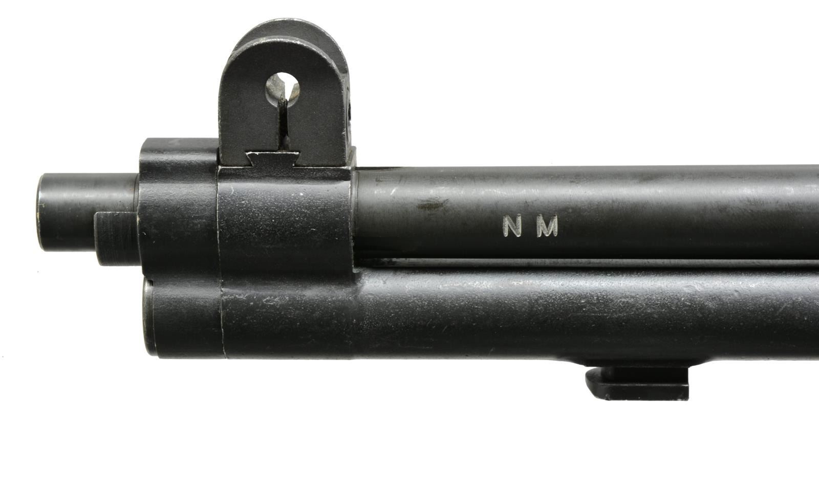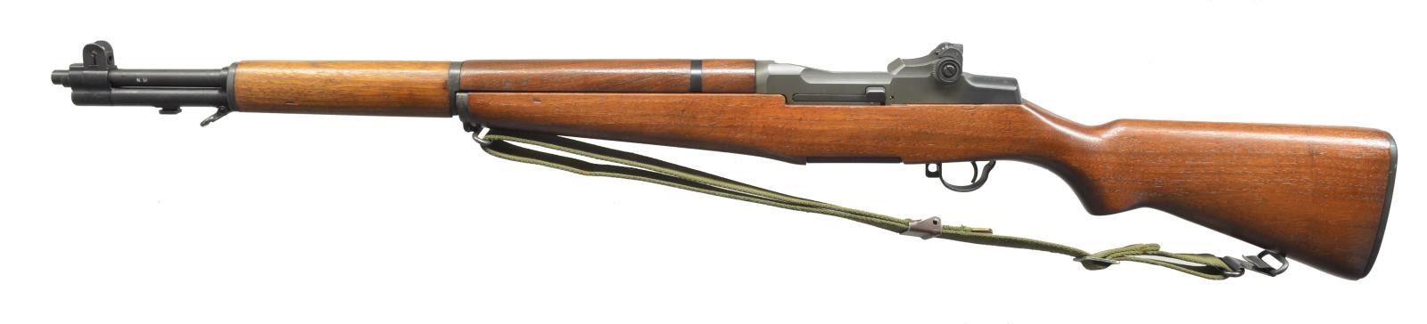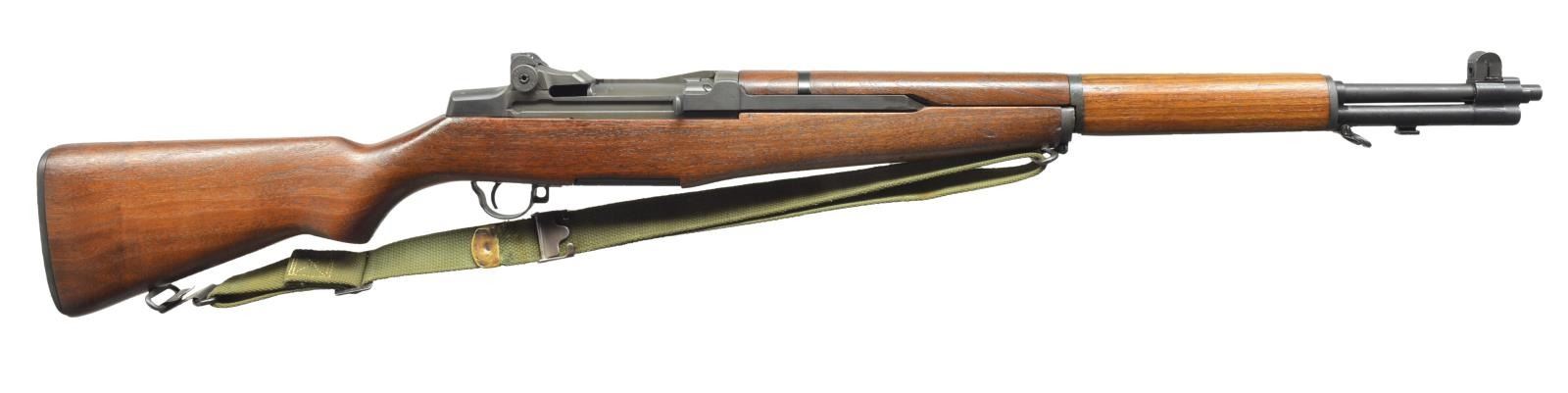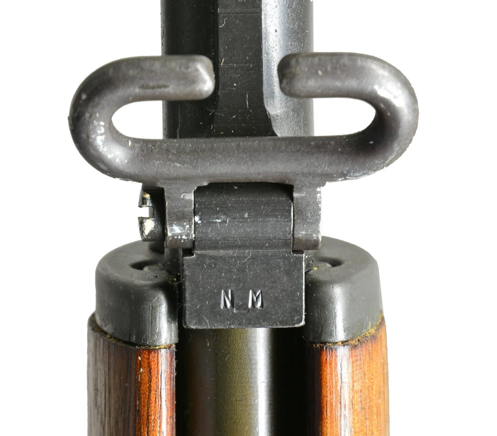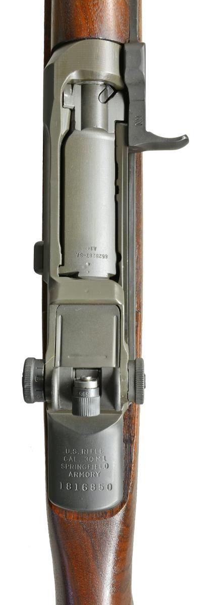 Cal. 30-06. S# 1816850. Bbl. 24". Very nice scarce Type II National Match rifle. S# is below that of newly mfg. National Match rifles which should fall in the 4.2 to 6.9 million range, however earlier rifles were reused & rebuilt as needed. Bbl. marked on right side "HRA", drawing number is obscured by added five-pointed star & "PT". Dated 6-52. Additionally marked "RS13", "P" & "M". Throat gauges 1.0, muzzle gauges slightly less than 1.0. Rear sight w/ correct adjustable aperture. Moveable base marked on left side "NM/2" & marked on right side w/ "NM". Windage knob marked "NM". Blade front sight w/ protective ears. Marked on right side "NM.062". Operating rod marked "NM" & "SA". Hammer marked "SA". Safety marked "IHC". Gas cylinder marked "NM" behind stacking swivel. High hump gas cylinder lock, cross slot gas cylinder lock screw. "SA" marked trigger housing is additionally marked in white in floorplate w/ "6850". Walnut stock set. Buttstock marked in bbl. groove w/ "6850". Buttstock has faint boxed eagle & three star acceptance mark. Circle "P" proof under grip is crisp & clear. Stock has glass bedding w/ appearance of very nice arsenal workmanship. Handguards are tight. Front handguard is not attached w/ screws. Green web sling. UNATTACHED ACCESSORIES: molded plastic "CMP" carrying case. Rifle has "CMP" certificate of authenticity & invoice. Also included is reprint of American Rifleman article "The National Match MI" by Bruce Canfield & misc. paperwork relating to the MI Garand Rifle. CONDITION: attractive original finished stock set w/ very sm. scattered handling marks. Metal has Parkerized finish showing very little high point wear. Near excellent shiny bore. (20-3968/RW). CURIO. $3,000-5,000.