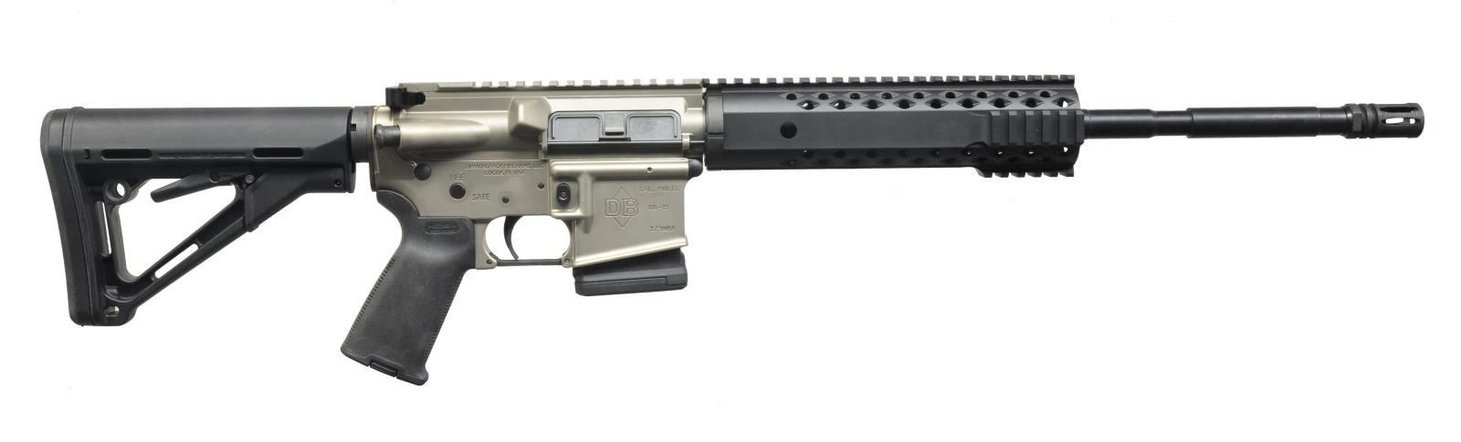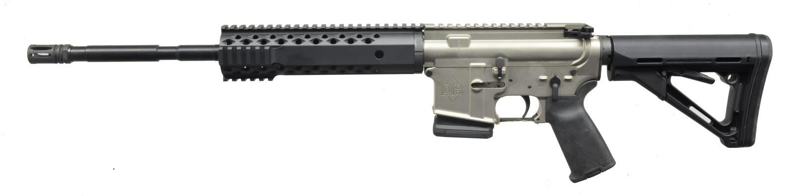 Cal. 223 REM. S# 373NRA. Bbl. 16" Chrom-Moly M4 style w/ 1:9 twist. A2 flash hider. Modified Diamondback aluminum four rail handguard, Magpul MOD pistol grip & Magpul 6 position CTR stock. Upper and lower finished in Nickel Boron. Flat top style w/ brass deflector & rnd. forward assist regulated w/ 9" rail system on handguard. Friends of NRA edition which was limited in production to 1,100 units w/ a special NRA serial number. MAGS: 1-10 rd. Magpul P-mag. UNATTACHED ACCESSORIES: factory case. Regal gun lock, owner's manuals & warranty card. CONDITION: all aspects near excellent; appears new. Still retains factory barcode sticker on trigger guard. Shiny bore w/ strong rifling. (20-4137/JZ). MODERN. $500-900.