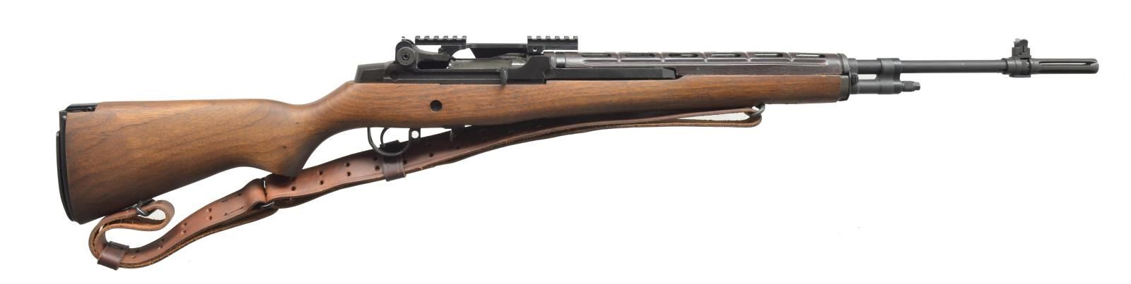 Cal. 308 Win. S# 311847. Bbl. 25" including flash suppressor. Bbl. is marked “SPRINGFIELD GENESEO IL”. Aperture rear sight adj. for windage & elevation. Blade front sight w/ protective ears marked on left side “NM 062”. Cage type flash suppressor, made w/ out bayonet lug. Rifle is equipped w/ 4th generation scope mount w/ picatinny rails marked “SPRINGFIELD ARMORY”. Walnut stock w/ fiberglass handguard. UNATTACHED ACCESSORIES: Springfield Armory marked military-style sling. CONDITION: all aspects, including bore, are very good to near excellent w/ very light high point wear. (20-2538/RW). MODERN. $800-1,200.