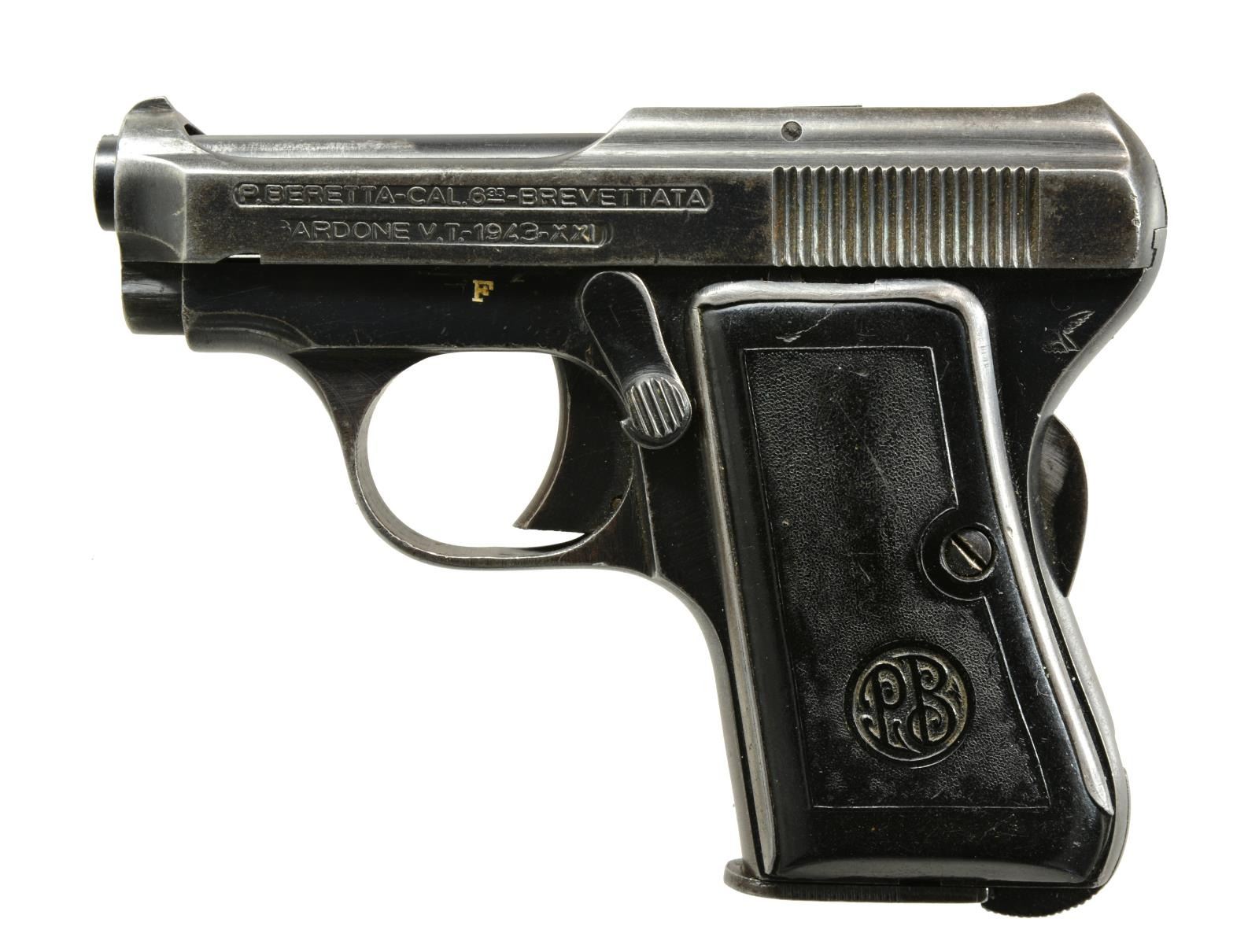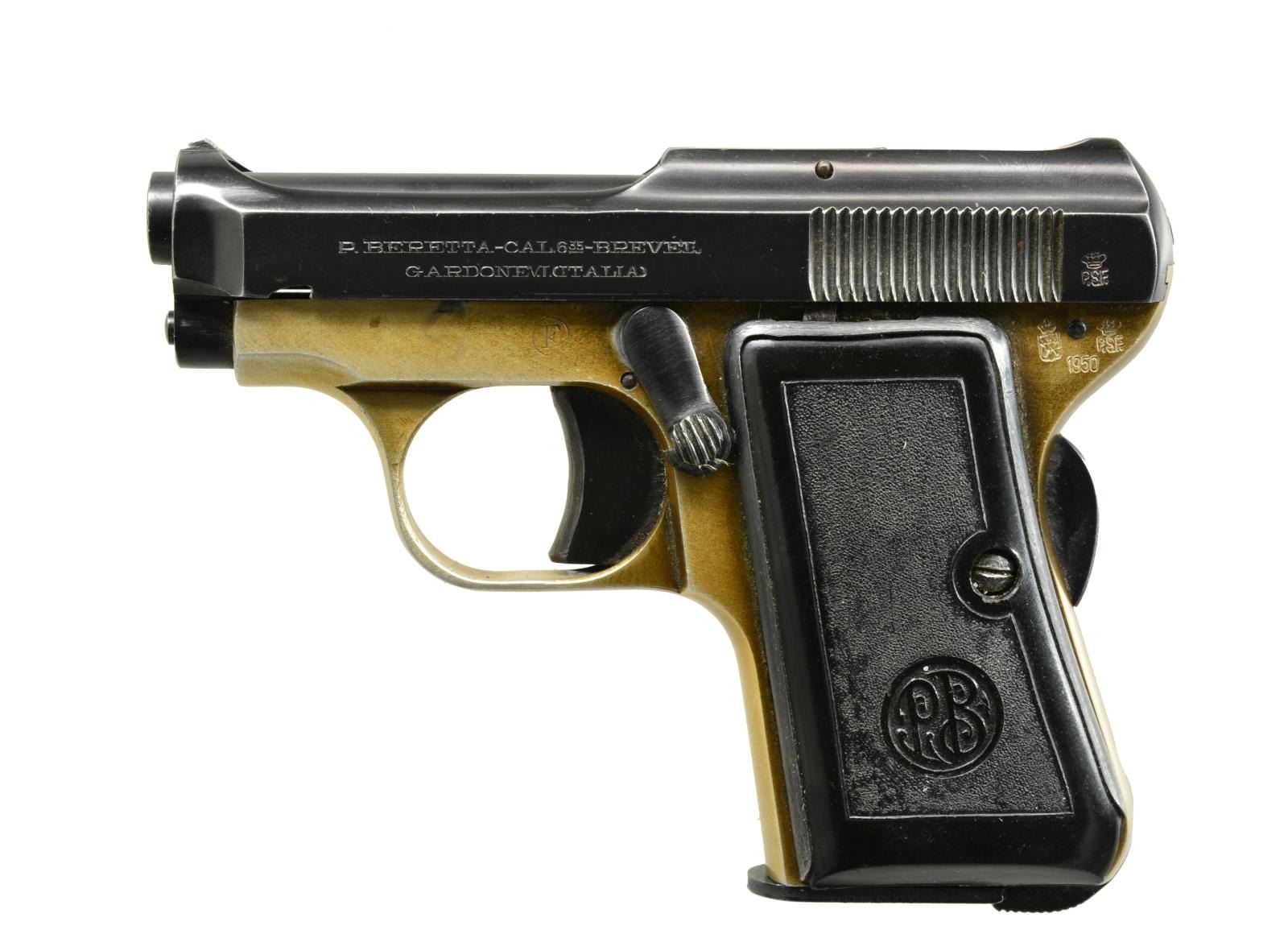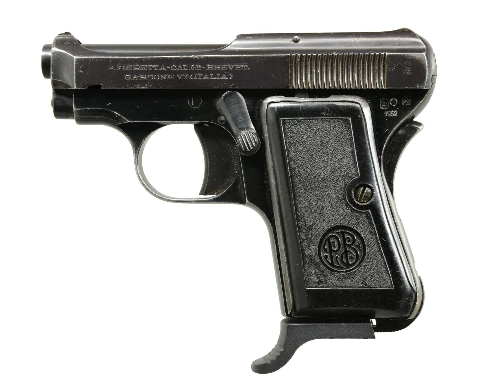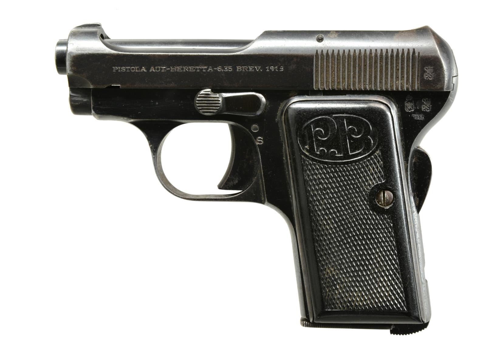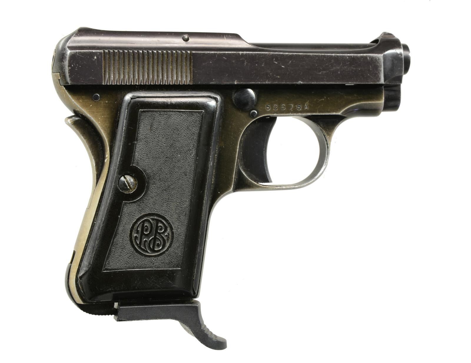ALL: cal. 6.35mm (25 ACP). Bbls. 2 1/2". “PB” Logo grips w/ metal backers. Grip safeties & bottom mag. latches. Blued finish. 1) MODEL 418. S# 62676A. Mfg. 1952 (1937-1961) w/ later production having curved grip safety & "A" S# suffix. Alloy frame & cocking indicator. MAGS: 1 aftermarket 8 rd. w/ plastic finger extension. CONDITION: good plus w/ high point finish loss, hand wear & fading of alloy frame. Very good to excellent bore. (20-1457/NW). 2) MODEL 1926. S# 194382. Mfg. 1932 w/ matching numbered slide, all steel construction & semicircular grip safety. Approx. 11,000 mfg. in S# range 187000-198000. MAGS: 1 good factory 8 rd. CONDITION: good general appearance w/ some thinning of finish & scattered peppery oxidation. Poor bore; worn & pitted. (20-1459/NW). 3) MODEL 418. S# 41312A. Mfg. 1950 (1937-1961) w/ earlier semicircular grip safety. Cocking indicator plus gold toned alloy frame. MAGS: 1 very good factory 8 rd. CONDITION: good plus overall w/ minimal high point wear. Thinning of frame finish somewhat at high points & at backstrap. Very good bore. (20-1464/NW). 4) MODEL 418. S# 645782. Mfg. 1943 (1937-1961) w/ earlier semicircular grip safety, matching numbered slide & left side slide legend of cast raised letters rather than stamped. Left top rear of frame has most of eagle symbol. MAGS: 1 good factory 8rd. CONDITION: good general appearance w/ numerous light marks, high point wear, thinning of finish & peppery oxidation. Good plus bore w/ light wear & traces of light pitting.(20-1465/NW). ALL CURIO. $750-1,000.