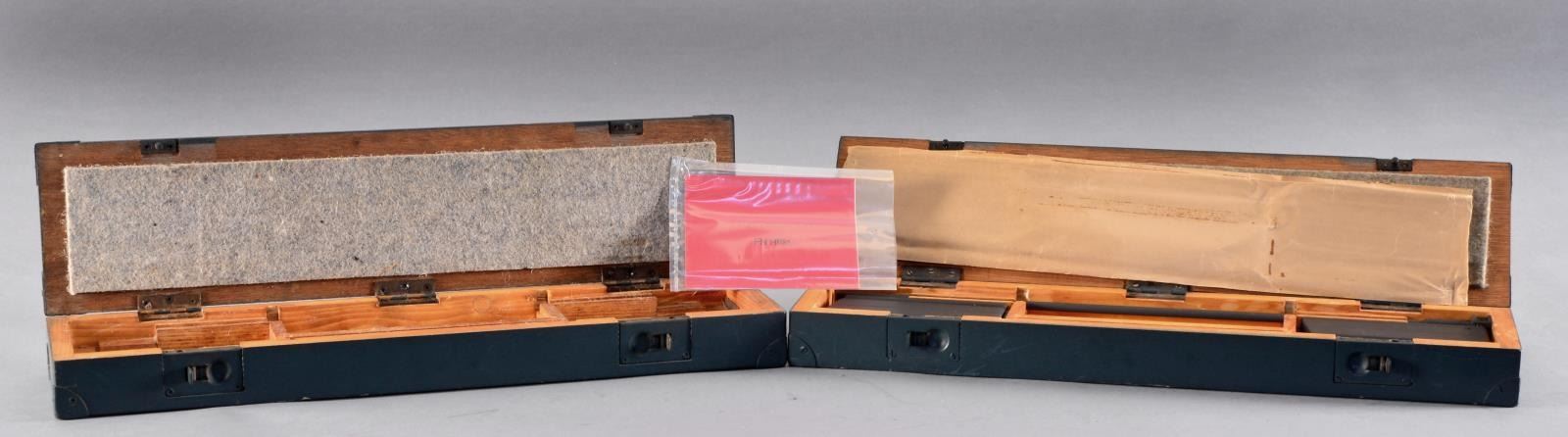 Cal. 22 LR. S# 1840. Bbl. 21.5". A 22 LR subcal. conversion kit for the 7.62mm FN L12A1. Kits of this type for the HK 91 & G3 are quite common, but very rarely encountered for the L12A1. This exceptional kit includes a 22 LR bbl. insert, 22 LR bolt assembly & 2-20 rd. mags. The mags. utilize an insert to properly feed 22 LR, though the exterior is almost identical to the factory FN 30 cal. mag. The mechanism is recoil operated through an inertia bolt & is capable of firing in both semi auto or full auto upwards of 800 RPM. The kit is packaged in a 23"x5.5" wooden crate, lined w/ felt which also includes wooden dividers. W/ this lot is a 2nd storage/transport crate, which is identical to the other. MAGS: 2-20 rd. UNATTACHED ACCESSORIES: 1 spare storage crate & factory HK operators manual. CONDITION: all aspects appear as new. If it has been utilized beyond test firing, then it would have been minimal. Finish on the mags. is largely unblemished & only on 1 mag. is it evident it has been inserted in a rifle. (02-13776/JZ). NONGUN. $600-1,000.