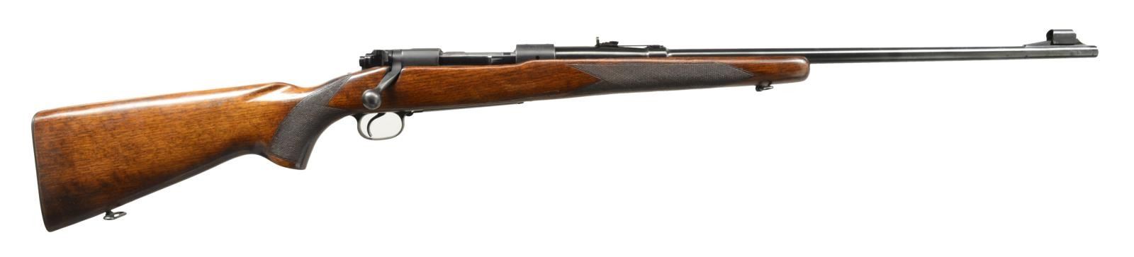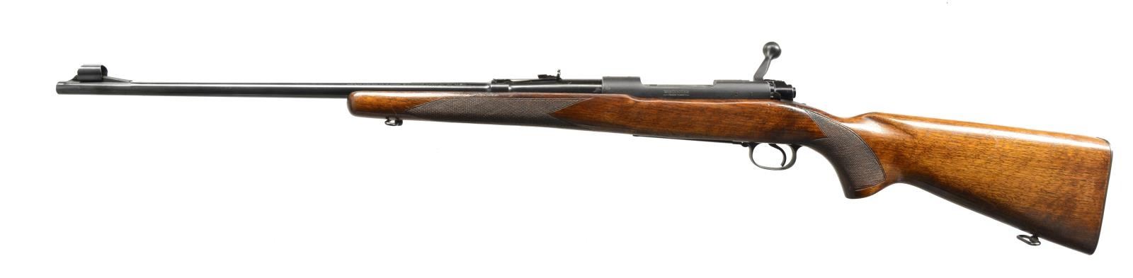 Cal. 30-06. S# 228839. Bbl. 24" w/ hooded ramp front sight & elevator adj. rear sight. Bolt is numbered to rifle. Straight comb checkered walnut sporter stock w/ sling swivels & checkered steel buttplate. 1952 Mfg. CONDITION: over 90% blue showing edge wear w/ spots of freckling on floorplate. Stock has moderately worn finish showing scattered scratches & handling marks. Bright bore w/ sharp rifling. PROVENANCE: From the Frederic W. Thrane Collection. (20-2474/DS). $700-1,000.