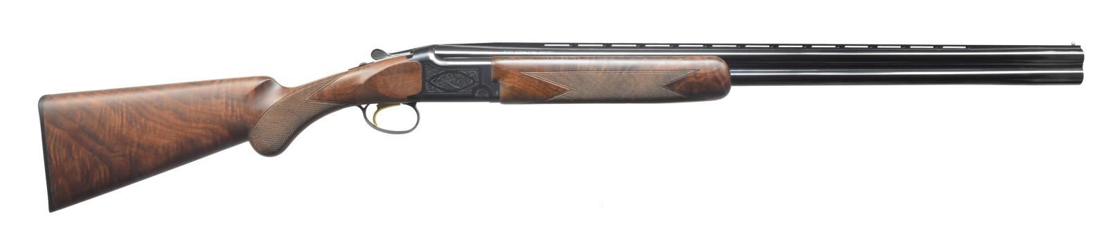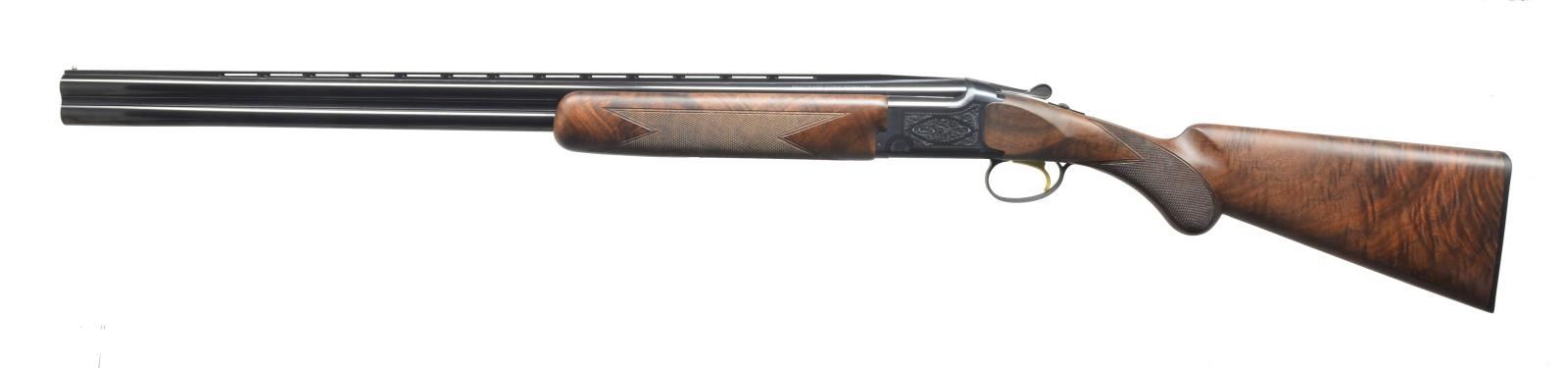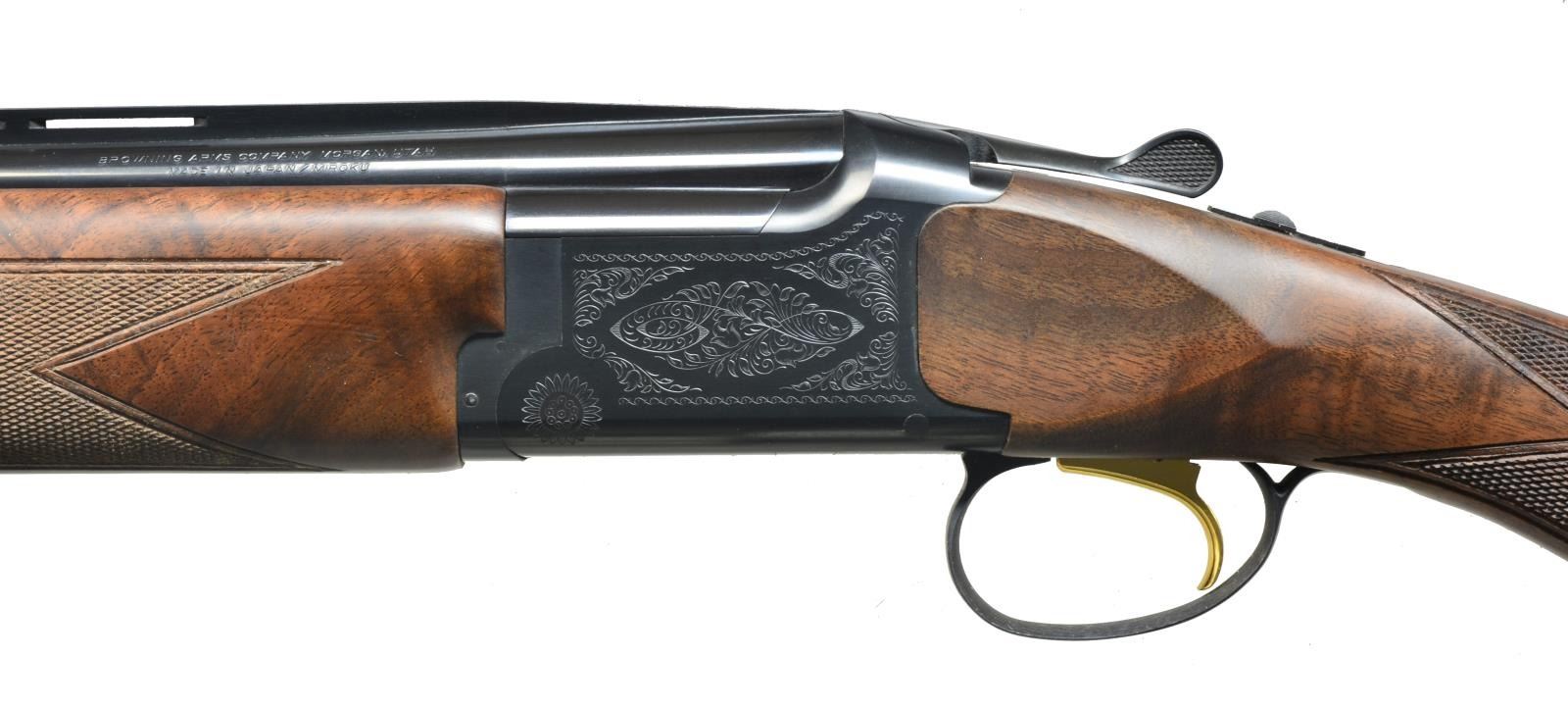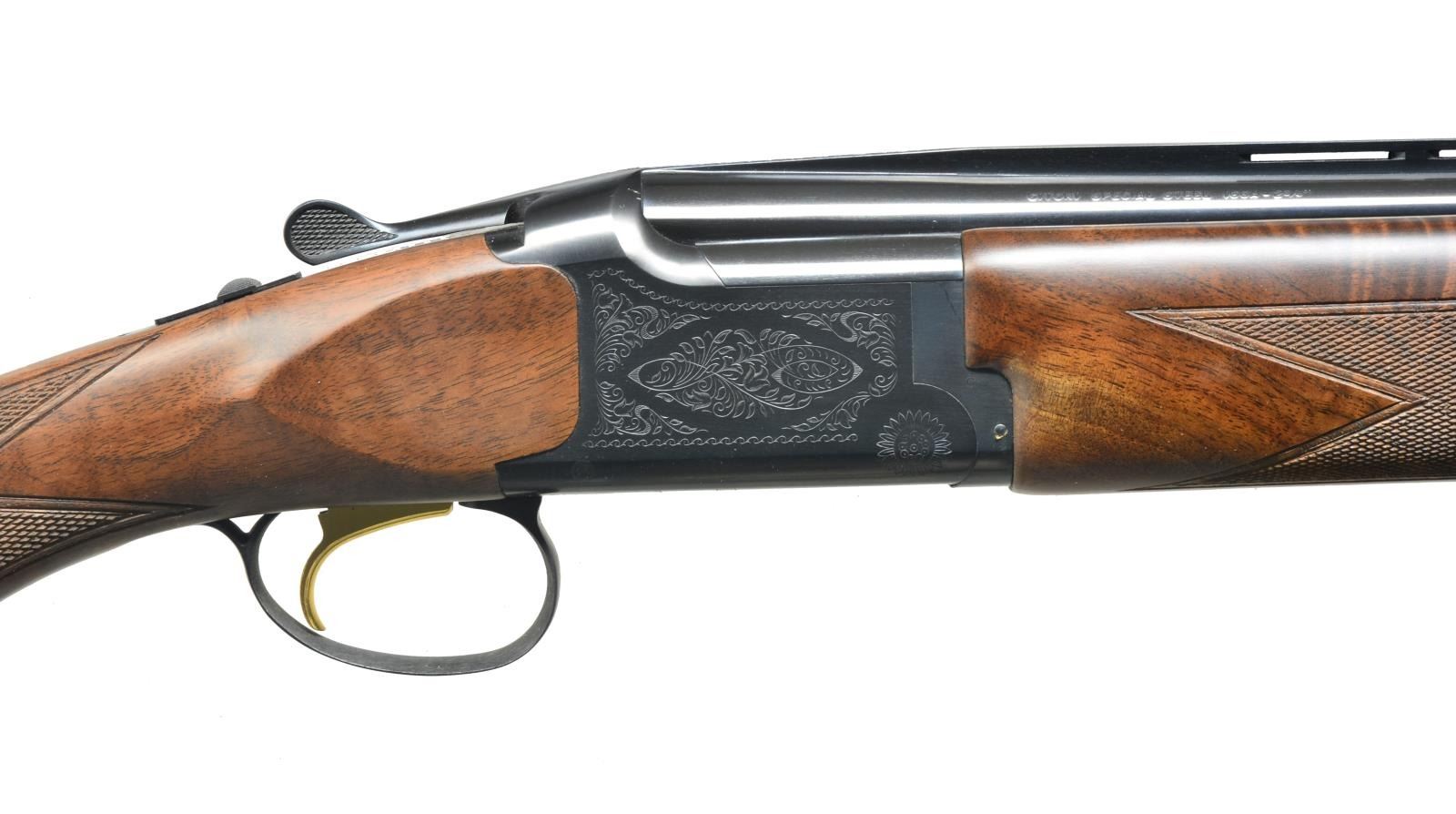 W/ INVECTOR 1 CHOKES. Cal. 16 Ga., 2 3/4". S# 22034ZV131. Standard configuration w/ 28" bbls. having slightly raised ventilated rib. Blued action is roll engraved in "grade 1" style. Oil finished stock of fancy stump figured American walnut measures 14 3/8" over Browning buttplate. Point pattern checkering is on rnd. knob pistol grip. Matching field forend has Deely type release. MEASUREMENTS: STOCK: LOP: 14 3/8". DAH: 2 7/16". DAC: 1 7/16". WEIGHT: 7 lbs. 4 oz. UNATTACHED ACCESSORIES: gun is accompanied by its original box containing instructions & 1 extra choke tube & wrench. CONDITION: very fine. Appears to be essentially unfired w/ only a few minor handling marks in all surfaces. Mechanically crisp. Box is fine, lightly soiled. (20-1656/MGM79). MODERN. $1,200-2,000.