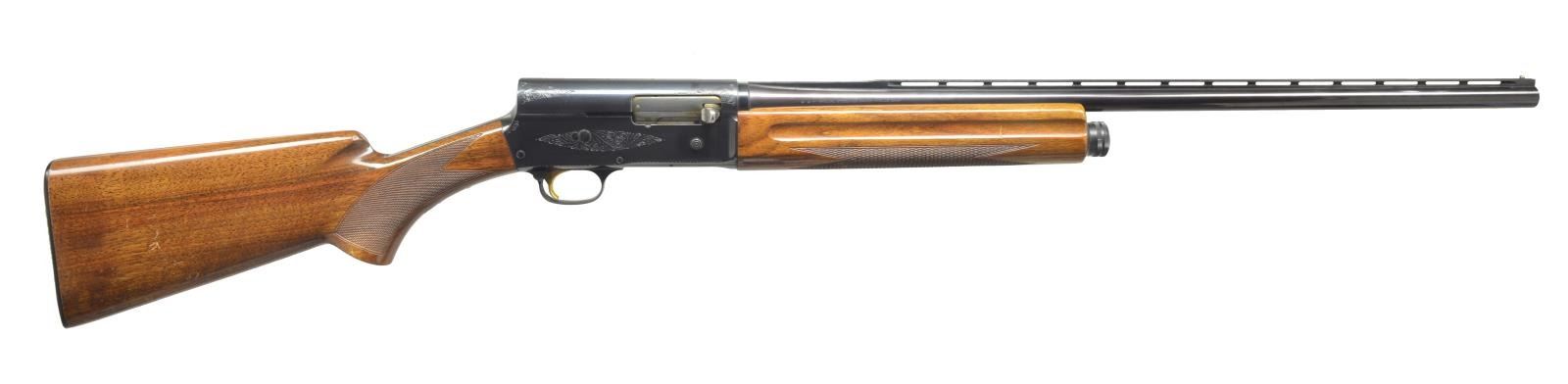 Cal. 20 Ga. S# 69Z41374. Bbl. 25 1/2" vent rib improved cyl., 2 3/4" chamber. Matted vent rib w/ silver front sighting bead. Standard checkered forend w/ finger grooves. Right side of bbl. marked w/ 2 stars & a dash for improved cyl. Receiver has the usual light engraving & left side center marked “TWENTY”. Checkered pistol grip stock. FN hard rubber buttplate. CONDITION: bbl. has most of its original blue, lightly toning towards purple w/ minor muzzle wear. Receiver has most of its original blue w/ sm. scratches center, rear of left side. Gold trigger. Forend has original finish, good checkering & few handling marks. Buttstock has original finish w/ knicks & scratches on right side. Good checkering. Bore is bright. (20-3169/BT). MODERN. $450-600.