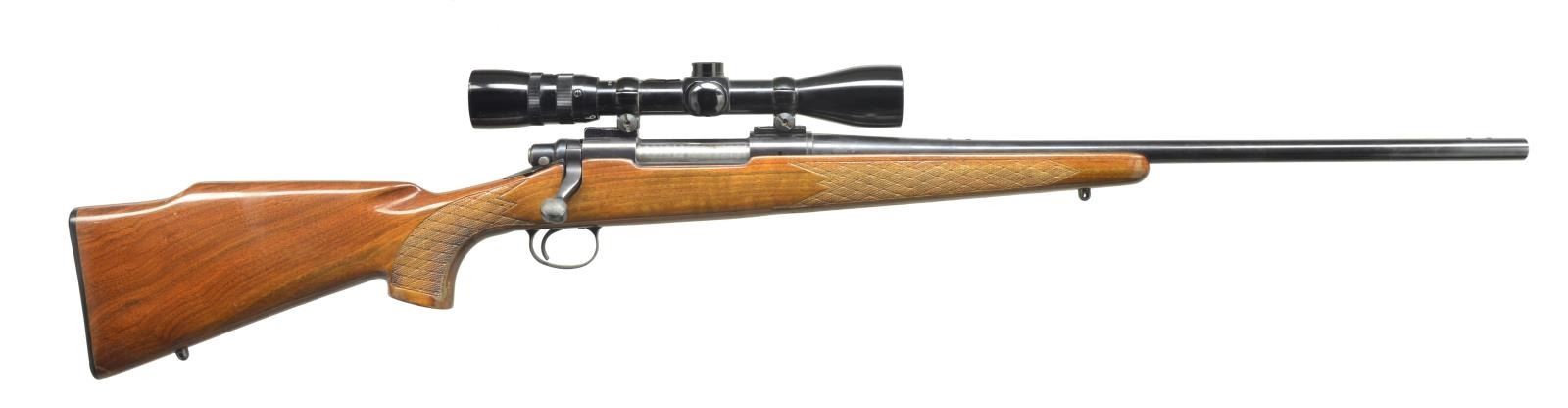 Cal. 30-06. S# 6313449. Bbl. 22" medium weight has Remington markings on left side. Standard length Remington Model 700 action has engine turned bolt body & blind magazine. Pistol grip stock of lightly figured American walnut features hard rubber buttplate, Monte Carlo comb w/ swept right hand cheek piece, sling eyes & pressed checkering at grip & forend. Rifle is mounted w/ Bushnell Banner 3-9x scope w/ duplex reticle & secondary ranging wire in Redfield rings & 2 piece bases. CONDITION: fine. Metal parts retain approx. 90% original blue. Stock has nearly all of its original finish w/ a considerable amount of nicks & dings, both lg. and sm. Fine bore. Scope is fine w/ some extra marks in tube. Optically clear. (20-3576/MGM). MODERN. $300-400.