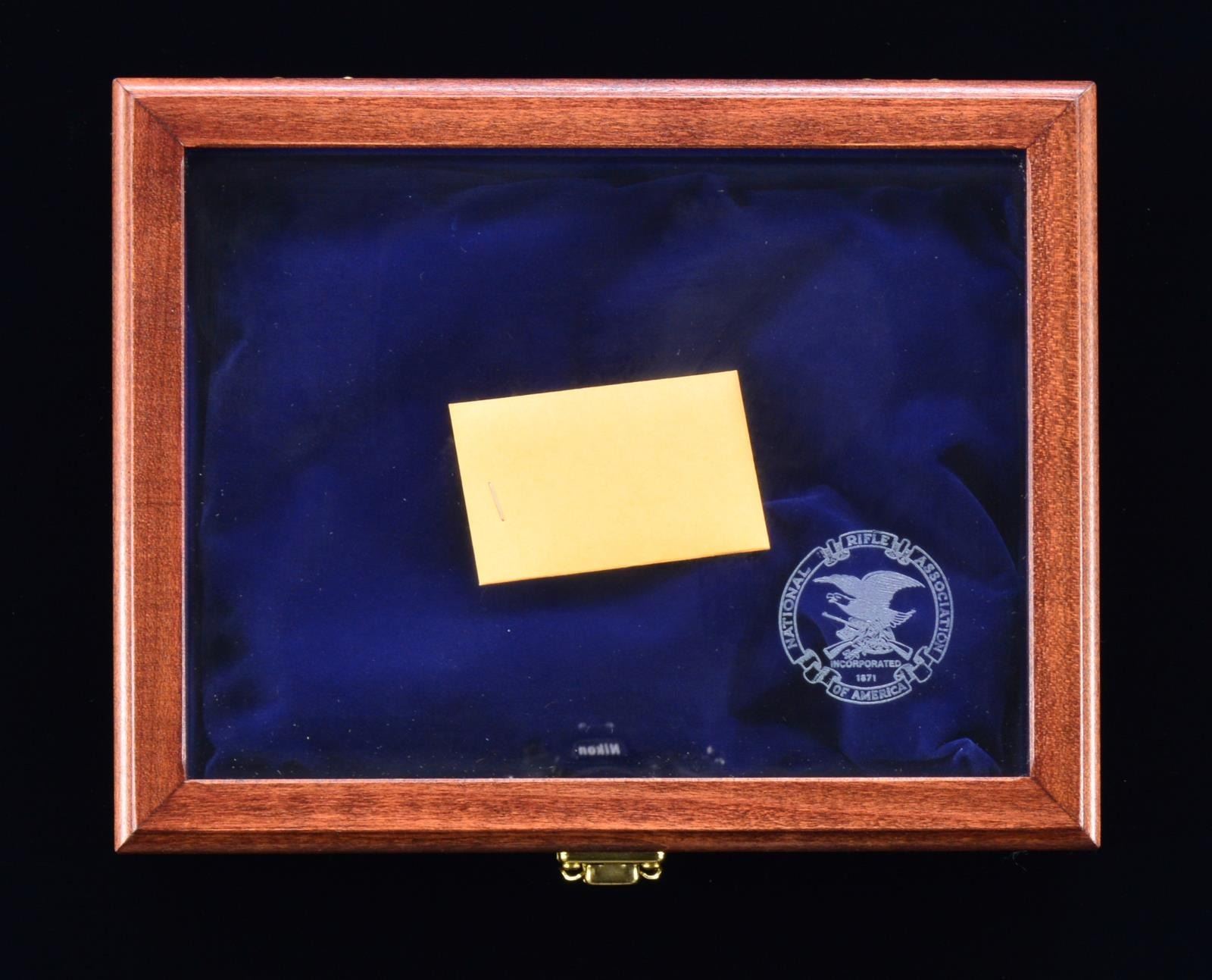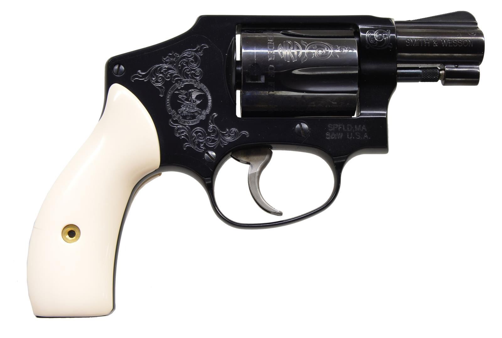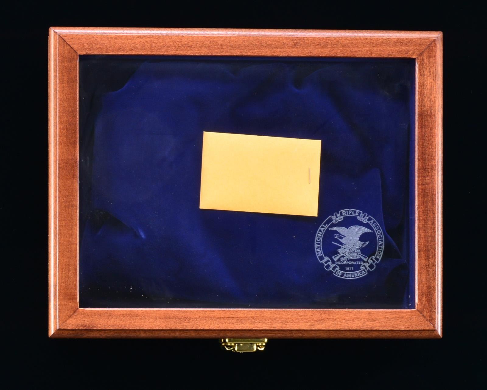 MODEL 442 WOMEN OF THE NRA DA REVOLVERS. ALL: cal. 38 S&W SPL. +P. This special Edition revolver dedicated to the Women of the NRA was issued during Sandra Froman's tenure as NRA president (2005-2007). Information cards w/ the guns picture Sandra Froman & quotes her views the guns as follow, "This model exemplifies the spirit & importance of our Second Amendment rights in a beautifully engraved piece that captures the essence of strong, powerful women who believe in their right to keep & bear arms." The first 130 of these 500 Special Edition guns had a spelling mistake on the cyl. The word "Amendment" was accidentally misspelled "AMMENDMENT". Only a portion of these had been sent to deals & distributors, S&W immediately asked for the guns to be returned, so cyls. could be replaced. To S&W's dismay, the distributor in possession of these 4 consecutive numbered guns declined to return them. It's believed that only a handful, other than these 4, are in circulation. Alloy J frame revolvers w/ concealed hammers. 1 7/8" Ribbed bbls. w/ serrated ramp front sights. Swing out fluted 5 shot cyls. Case colored triggers. Synthetic ivory rnd. butt grips. Ornamentation consists of scroll engraving on muzzle end of bbls., both sides of frame & cyl. between flutes w/ "NRA" markings. Left side of frame features the NRA seal. Inscription around the back of cyl. reads "ORIGINAL DEFENDER OF FREEDOM SECOND AMMENDMENT". UNATTACHED ACCESSORIES: both guns are housed in original blue molded S&W boxes w/ matching S# labels. Boxes contain instruction manuals, S&W club, laser engraving, NRA pamphlets & Sandra Froman cards along w/ trigger locks & fired cases. Also included are glass fronted wooden display cases w/ blue velour interiors having NRA seal on lids. CONDITION: both guns appear near new & unfired showing a slight drag line on the cyls. 1) S# NRA0210. (19-339/DS). 2) S# NRA0211. (19-340/DS). ALL MODERN. $4,000-6,000.