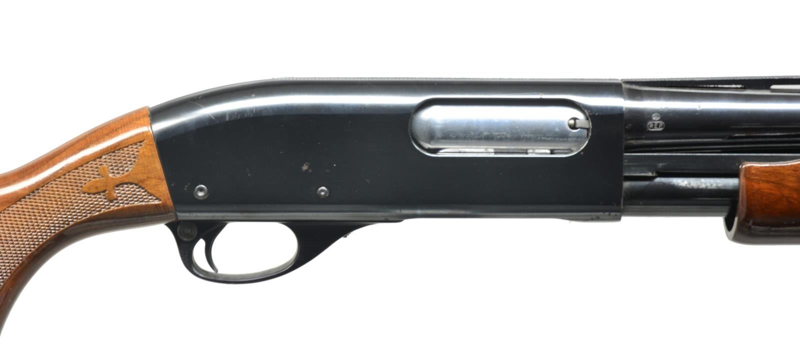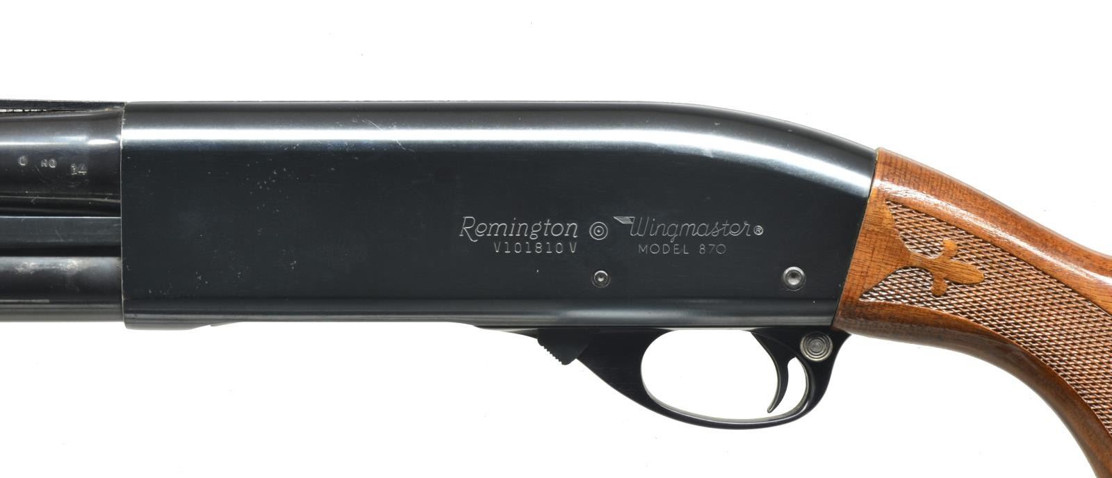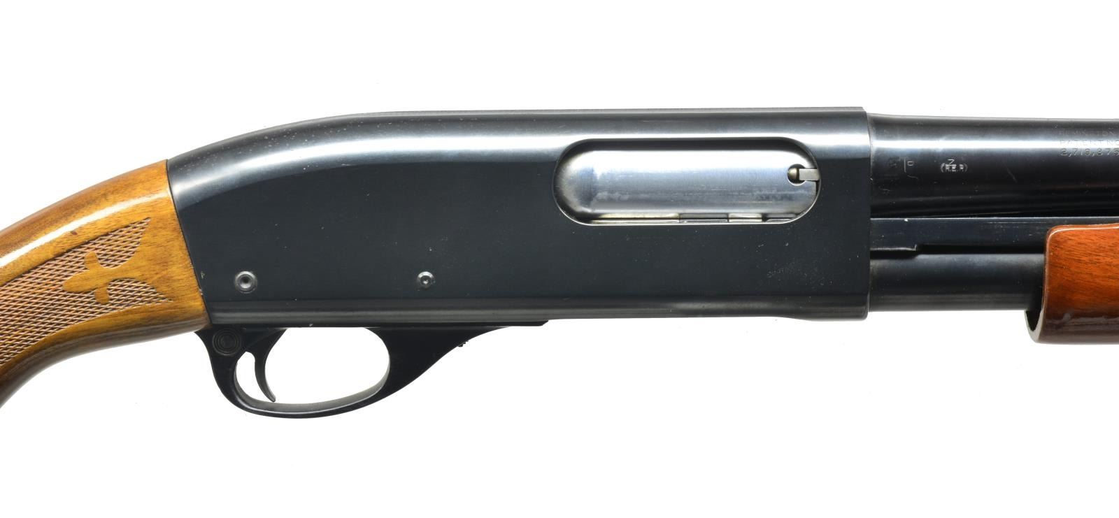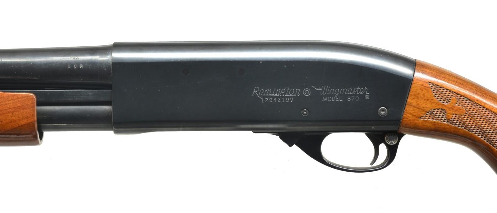 1) Cal. 12 Ga., 2 3/4". S# 1294219V. Bbl. 28" plain marked “MODIFIED”. Single silver front sighting bead. 9" Mag. tube extension. Standard checkered forend. Checkered pistol grip w/ black grip cap w/ flying duck. Vented red Remington recoil pad. CONDITION: bbl. has original blue w/ area of fine surface oxidation. Receiver has original blue w/ some wear on sharp edges. Forend has original finish, minor handling marks & good checkering. Buttstock has original finish w/ a couple minor nicks/dings w/ good checkering. Recoil pad is soft. Bore is good. (20-3483/BT). 2) Cal. 12 Ga., 2 3/4". S# V101810V. Bbl. 28" vent ribbed marked “MODIFIED”. Standard checkered forend & checkered pistol grip w/ black grip cap w/ flying duck. Brown vented Remington recoil pad. CONDITION: bbl. has good original blue w/ few minor scratches. Top of vent rib has a brown discoloration in grooves. Receiver has good original blue w/ minor wear on sharp edges. Sm. marks on right side of receiver. Forend has original finish w/ few handling marks & good checkering. Buttstock has original finish w/ a couple light scratches & good checkering. Bore is good. (20-3484/BT). 3) MAGNUM. Cal. 12 Ga. Mag., 3". S# V466893M. Bbl. 30" vent rib w/ full choke mark. Left side of receiver marked “REMINGTON MAGNUM”. Right side has a decal for “Foothills Trap Range”. Standard checkered forend. Checkered pistol grip w/ black grip cap & flying duck mark. Brown vented Remington recoil pad. CONDITION: bbl. has good, original blue w/ minor rub mark from forend. Receiver has good original blue w/ minor wear on sharp edge. Forend has good, original finish w/ few handling marks & good checkering. Buttstock has original finish w/ some minor handling marks & good checkering. Mag. tube has blue loss from wear. Recoil pad is soft. Bore is good. (20-3485/BT). ALL MODERN. $950-1,600.