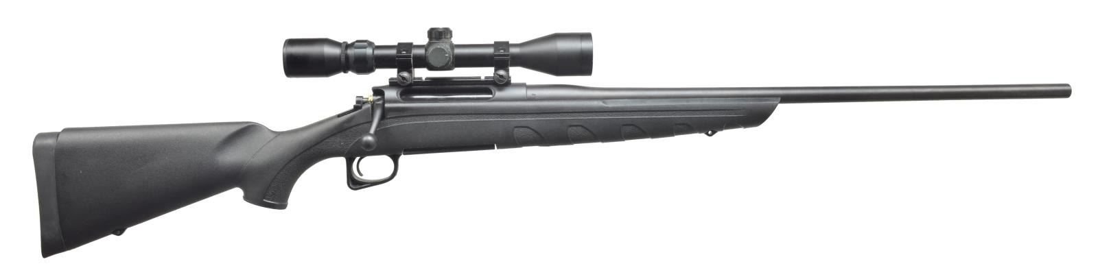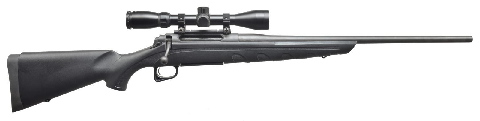 1) Cal. 308 Win. S# M71985488. Bbl. 22 1/2” made w/ out sights. Receiver has Weaver base & rings holding an unmarked 3-9 scope w/ duplex reticle. Black synthetic stock w/ stippled grip & black grip cap w/ a lg. “R”. Solid black Remington recoil pad. Left side cheek piece. Sling swivel attachments. CONDITION: bbl. retains most original matte blue w/ minor scratching at muzzle. Receiver retains most of its original matte finish. Synthetic stock has original finish. Bore has scattered fine pitting. (20-3426/BT). 2) Cal. 7 mm Rem Mag. S# 71538994. Bbl. 24” made w/ out sights. Receiver has Weaver scope base & rings holding a Bushnell 3-9 w/ duplex reticle. Black synthetic stock w/ stippled pistol grip & lg. “R” marked black grip cap. Solid black recoil pad w/ Remington cheekpiece. Sling swivel attachments. MAGS: 1 Remington marked mag. CONDITION: bbl. retains most of its original matte finish w/ few handling marks & a minor scratch near muzzle. Receiver retains most of its original matte finish. Stock retains its black original finish. Bore is good. (20-3427/BT). BOTH MODERN. $600-900.