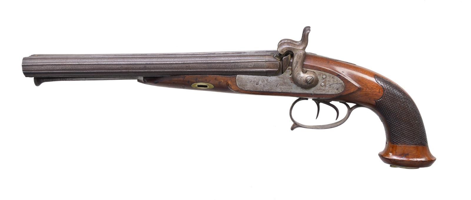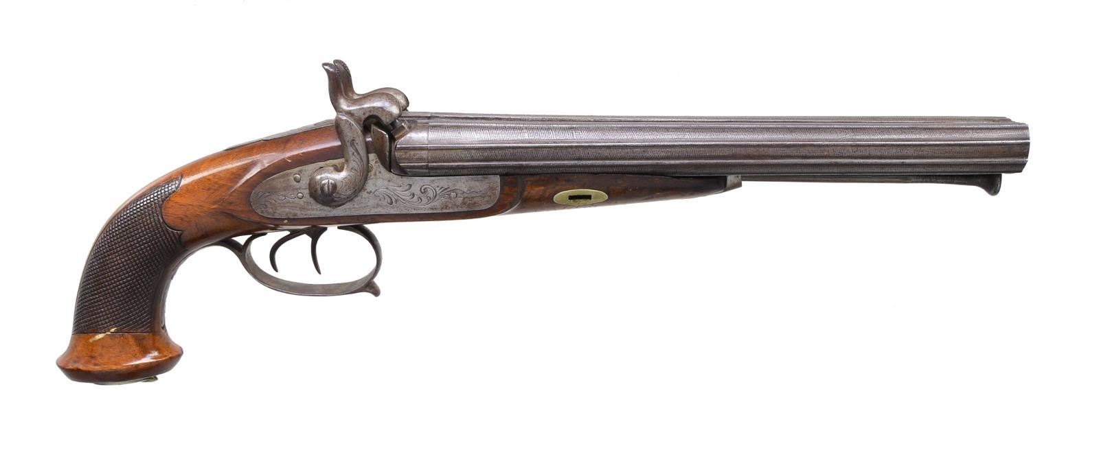 Lot 3460 BELGIAN HOWDAH STYLE SXS PERCUSSION PISTOL.