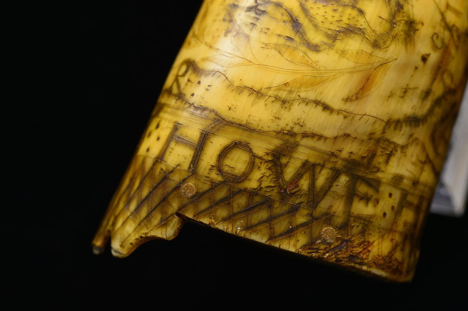 Lot 3550 POWDER HORN OF “CALEB HOWE” 1750.