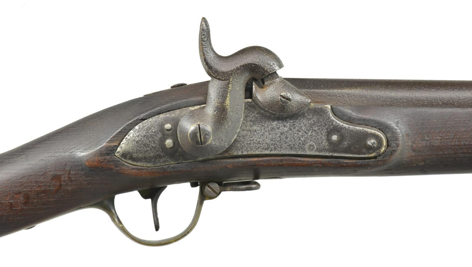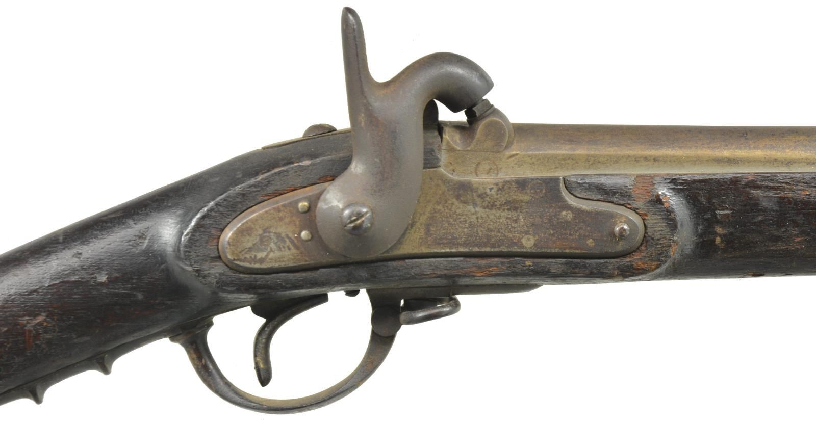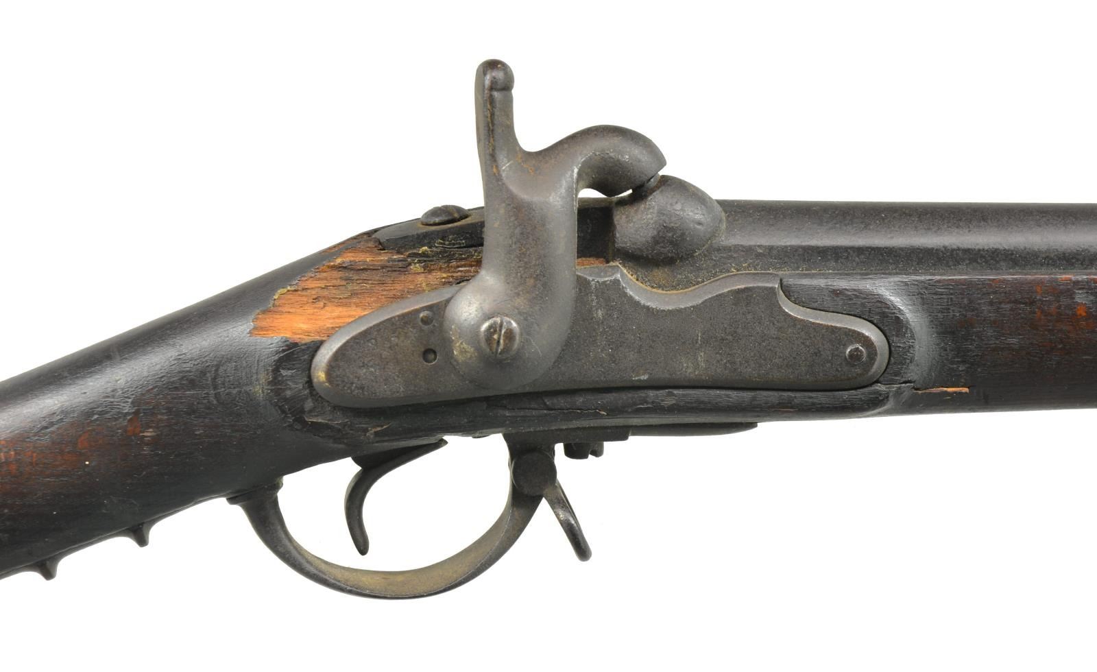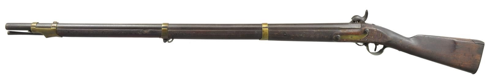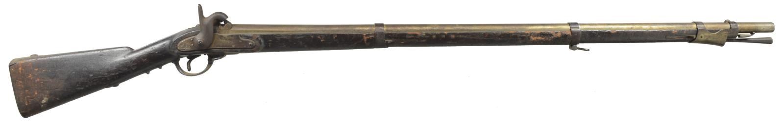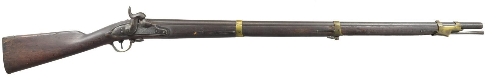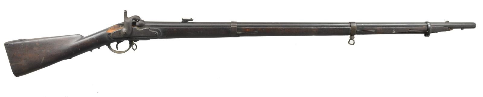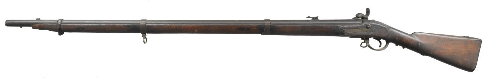 ALL: NSN. 1) EUROPEAN CONVERSION. Cal. 69. Bbl. 42 1/2" w/ blade front sight & folding leaf rear sight. Cone style conversion. Lock & major parts numbered "243". 3 Band fastened hardwood stock w/ iron fittings. Ramrod is missing. CONDITION: metal has dark crusty patina appearance w/ general pitting. Stock has dark worn appearance showing cracks & lg. pieces of missing wood around lock. Dark pitted bore. (01-18205/DS). 2) EUROPEAN CONVERSION. Cal. 69. Bbl. 42 1/2" replacement percussion bbl. Converted lock. 3 Band stock w/ iron fittings. Metal has mottled gray brown patina appearance. Stock has dark appearance w/ numerous dents, gouges & handling marks. Dark pitted bore. (01-18353/DS). 3) POTSDAM. Cal. 71. Bbl. 41". Potsdam marked lock. 3 Band hardwood stock w/ brass bands, trigger guard & side plate. Iron buttplate & trumpet tipped ramrod. CONDITION: metal has general pitting becoming heaviest in breech area. Stock has dark weathered appearance showing dents & gouges w/ cracks & chips in buttplate, lock, tang & trigger guard areas. Dark heavily pitted bore. (01-18370/DS). ALL ANTIQUE. $700-1,000.