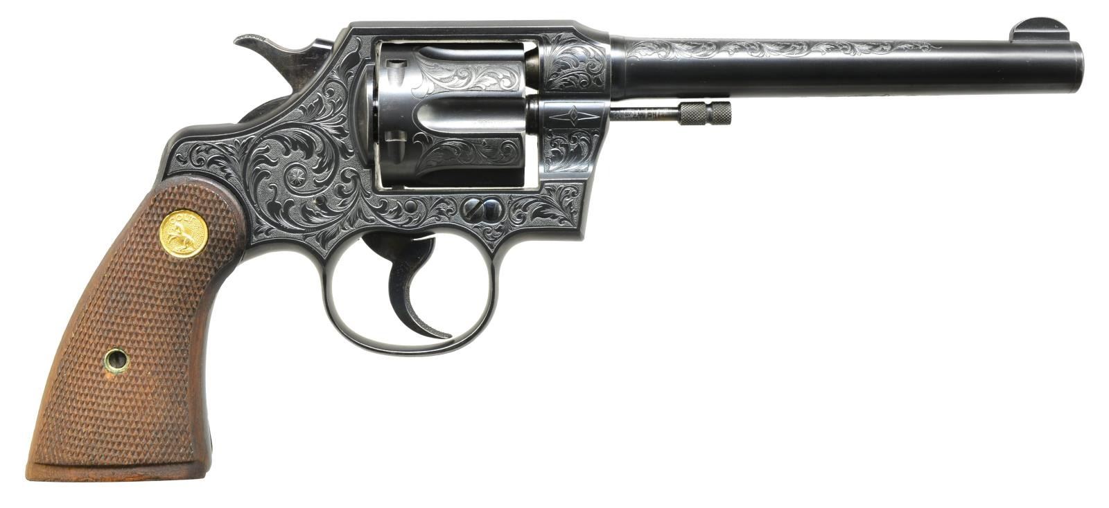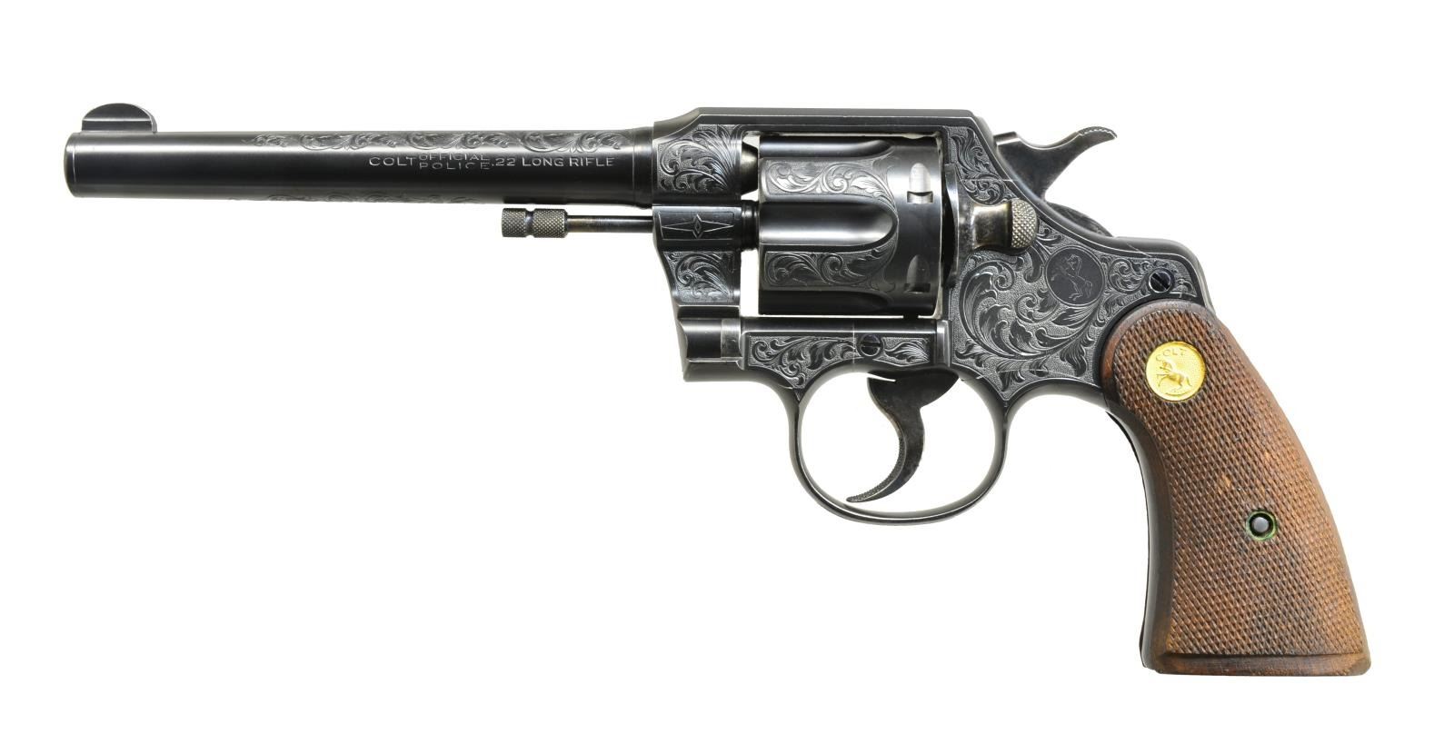 Lot 4367 CUSTOM ENGRAVED COLT OFFICIAL POLICE DA REVOLVER.