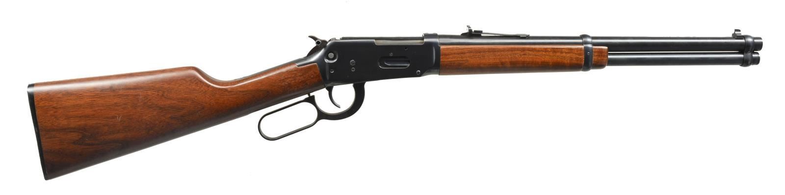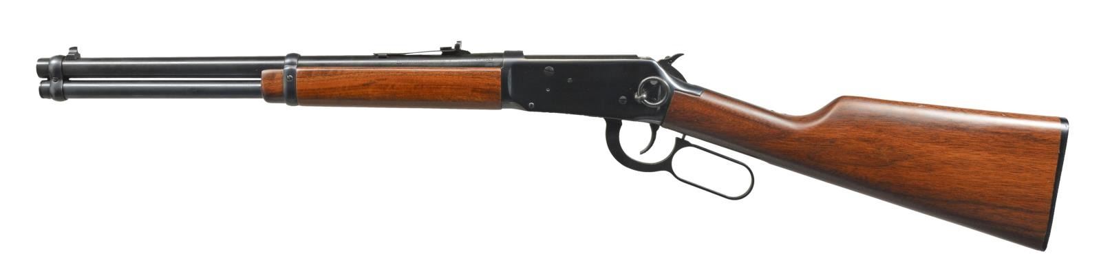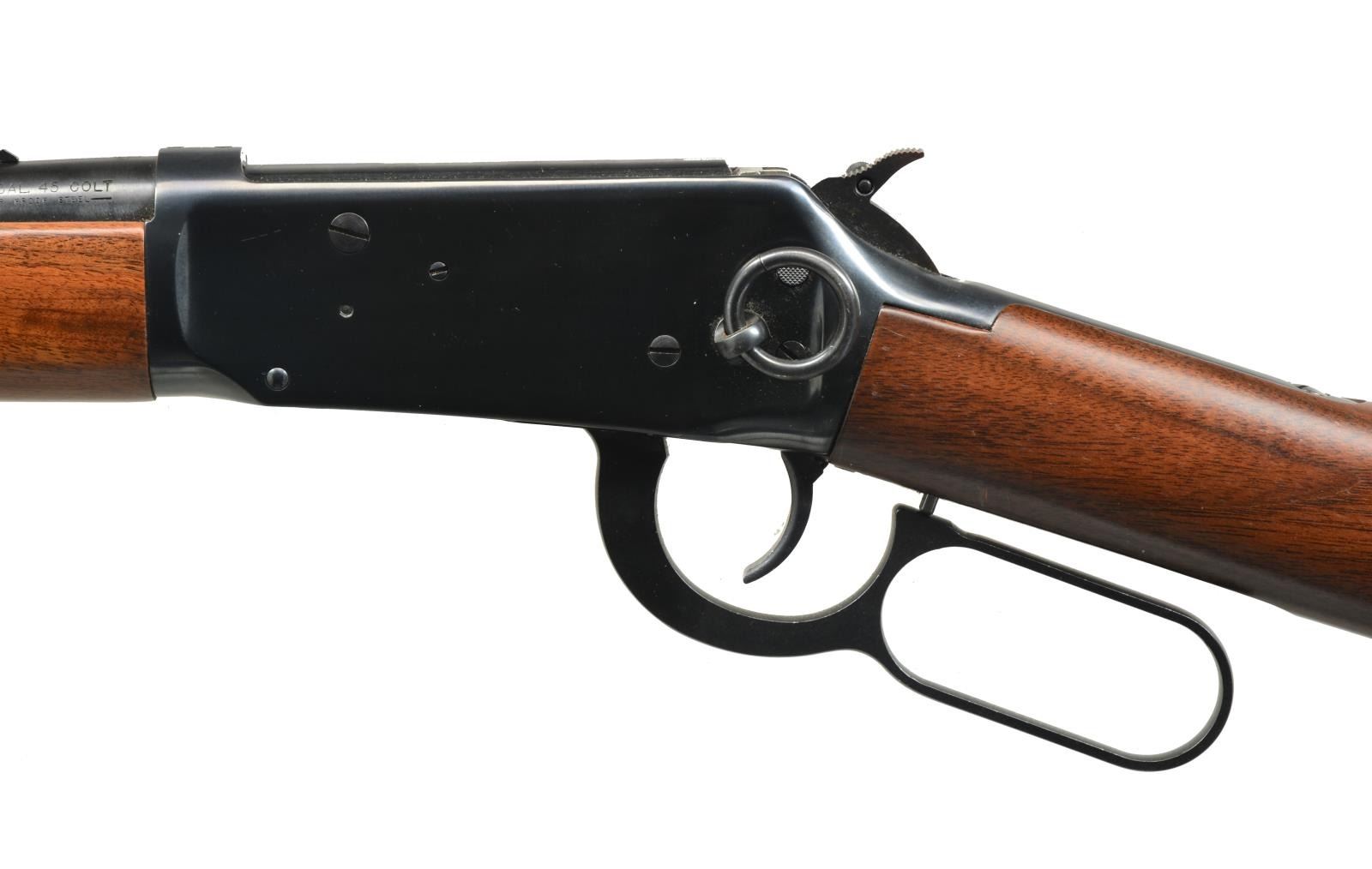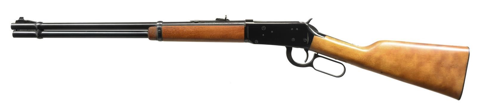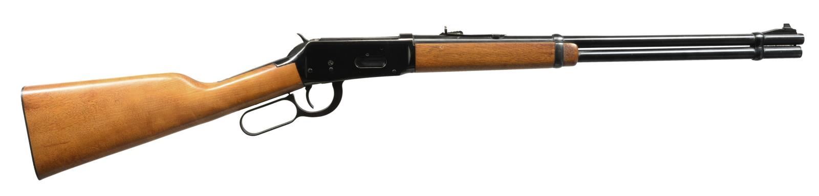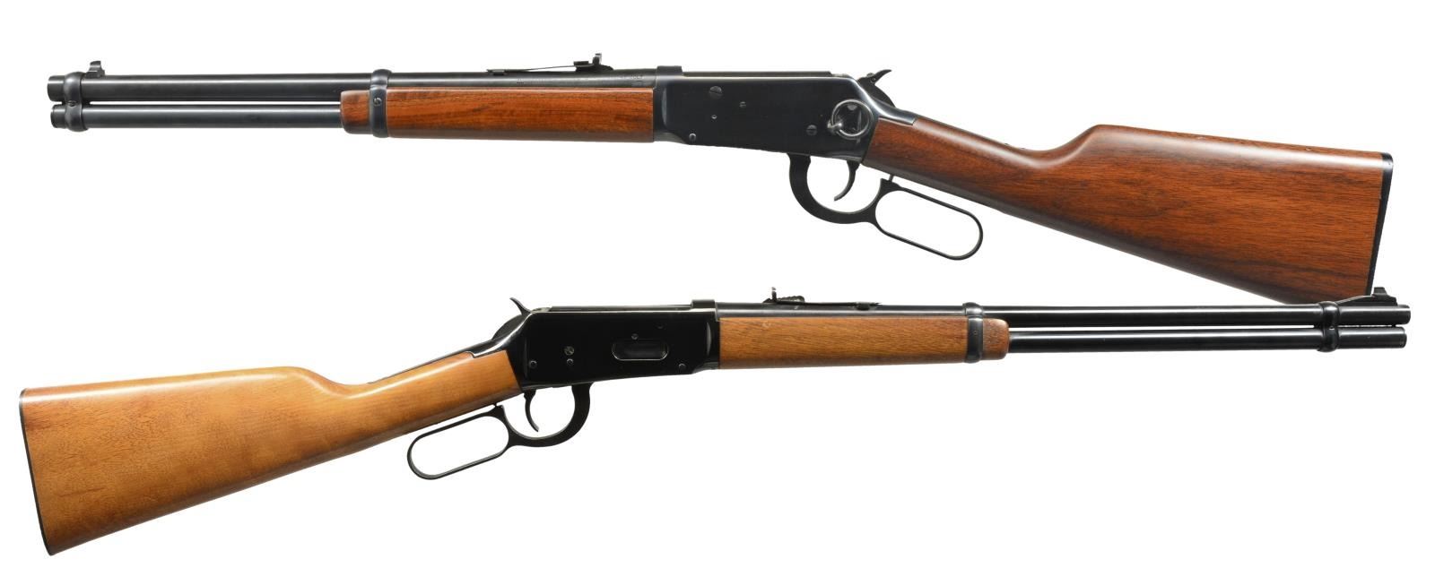 1) MODEL 94 AE TRAPPER. Cal. 45 Colt. S# 6210809. Bbl. 16" w/ blade front sight & sporting rear sight. Full length mag. Angle eject action features crossbolt safety, saddle ring on left side, & hammer extension. Receiver is drilled & tapped for scope mts. Trapper length walnut forearm & straight grip stock w/ original buttplate. CONDITION: 98% blue. Very good wood finish showing a few sm. marks. Bright bore w/ near excellent rifling. (20-2541/DS). MODERN. 2) MODEL 94. Cal. 30-30. S# 3069118. Bbl. 20" w/ ramp mounted bead front sight & sporting rear sight. Full length mag. Hardwood forearm & straight grip stock w/ stamped steel buttplate. 1967 Mfg. CONDITION: 98% wood & metal finish. Stock shows a few sm. marks. Bright near excellent bore. (20-2582/DS). CURIO. $800-1,100.